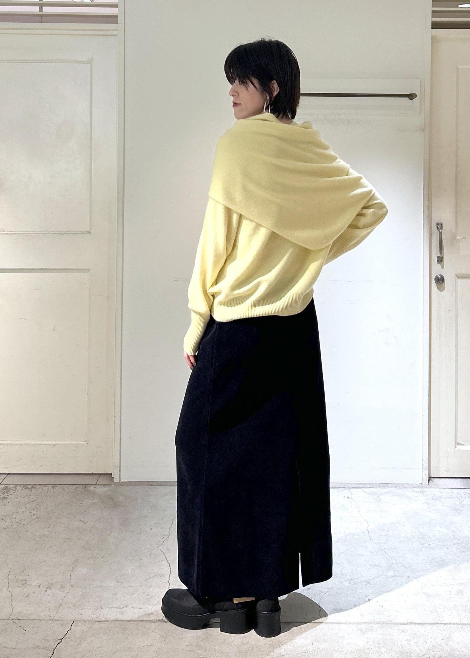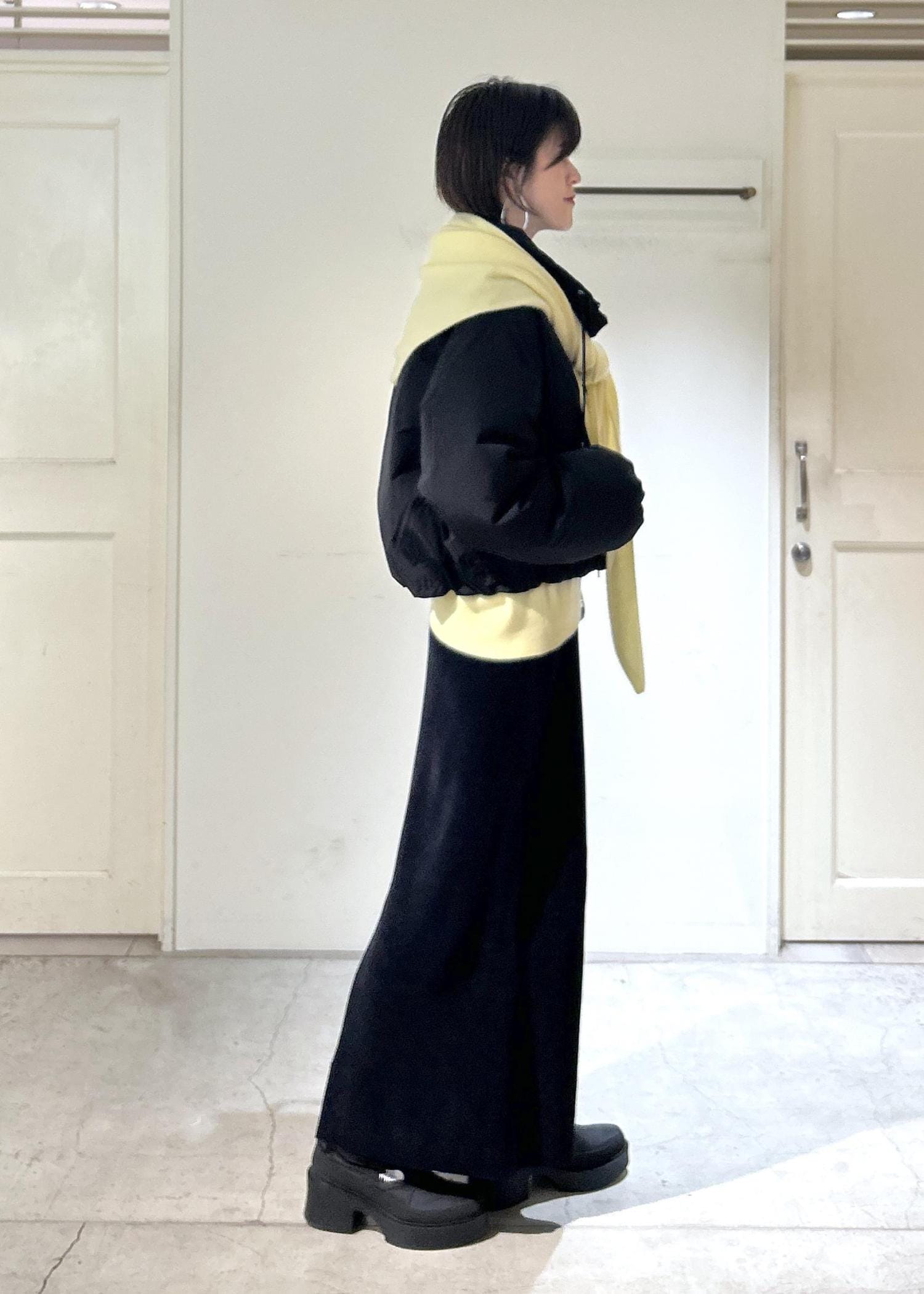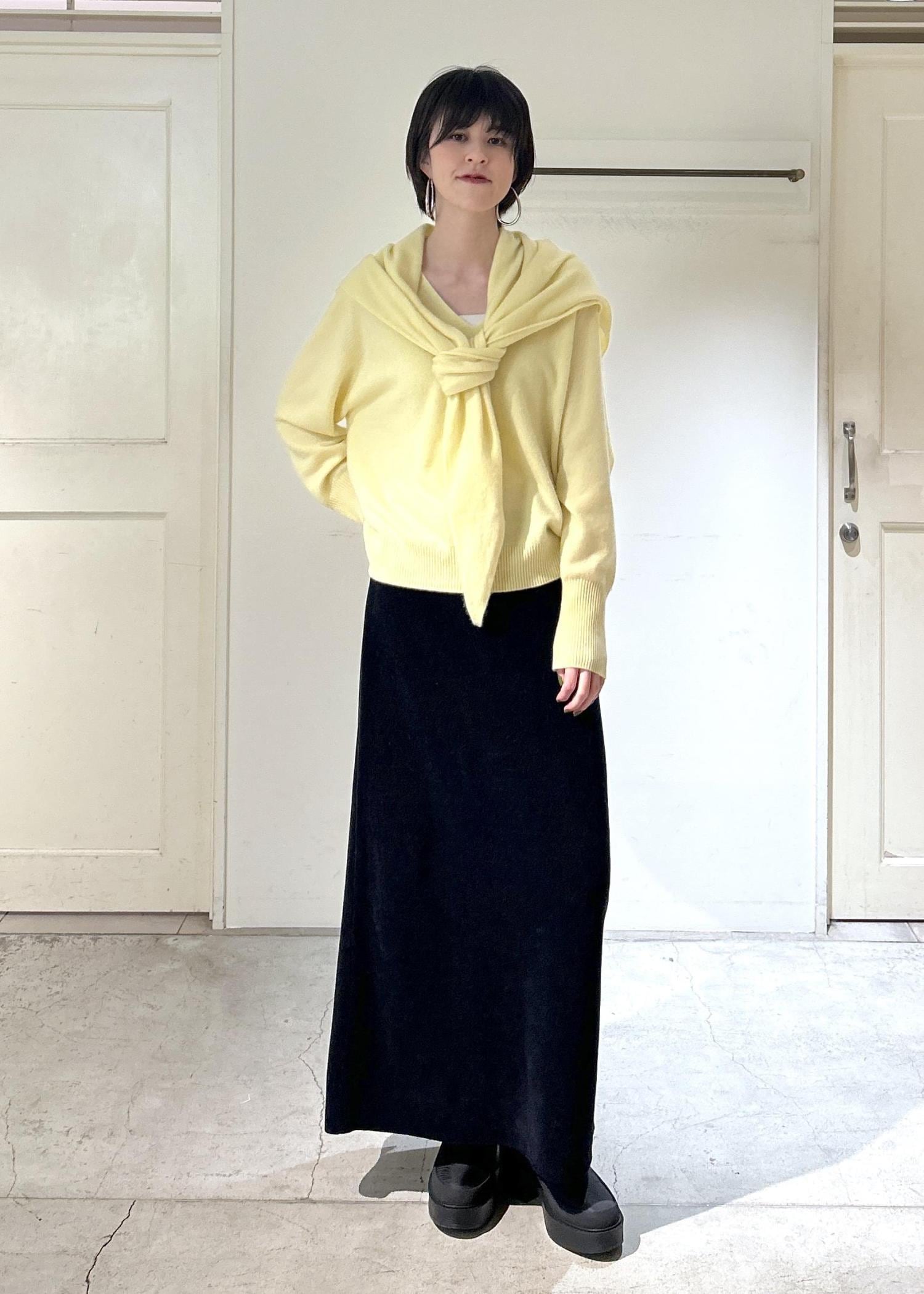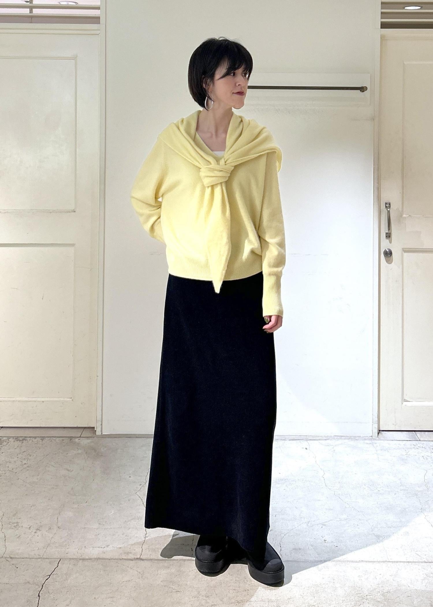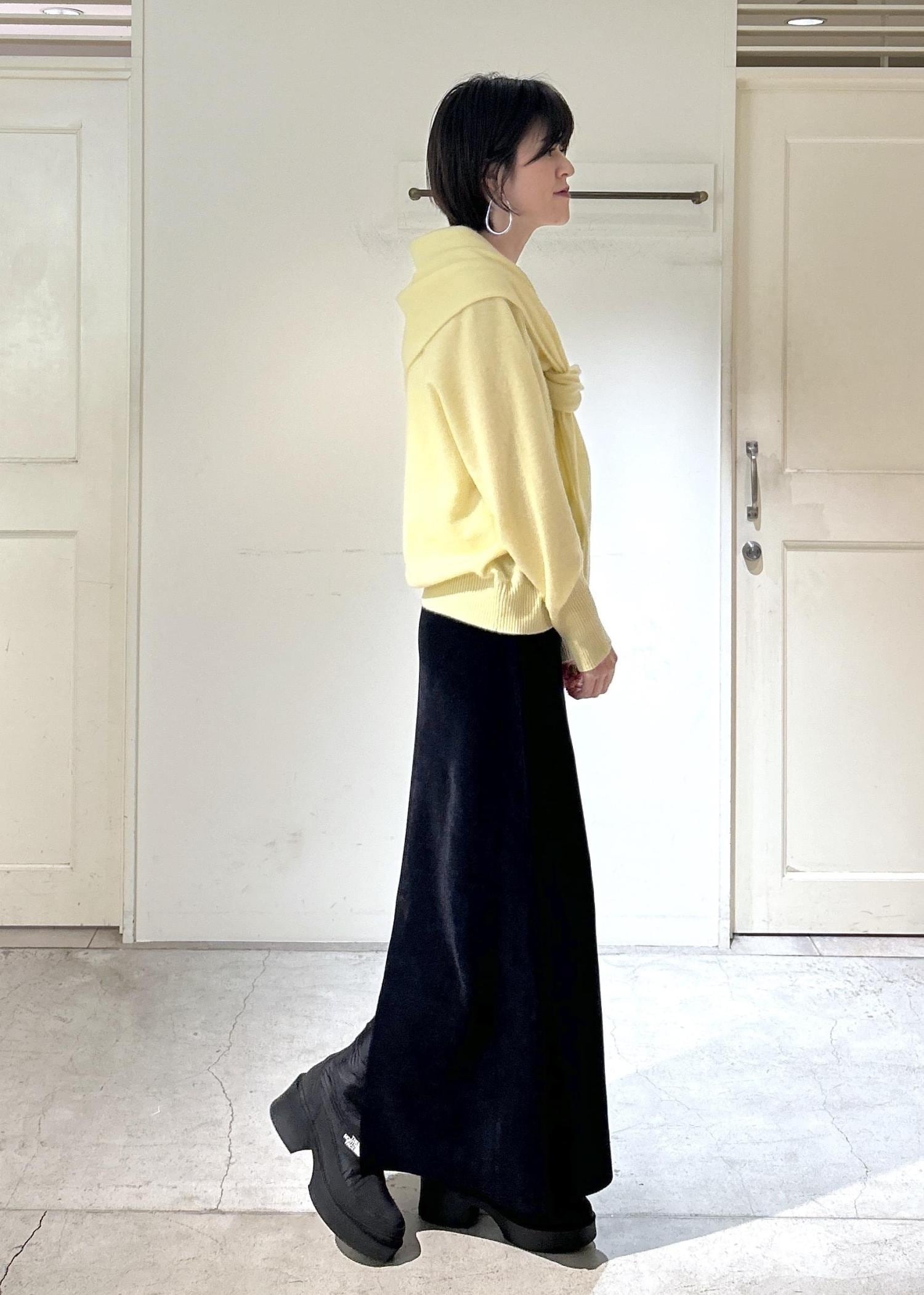 カシミヤニットとダウンで暖かさはもちろん、上品なイエローカラーが気分を上げてくれるお気に入りのコーディネートです。