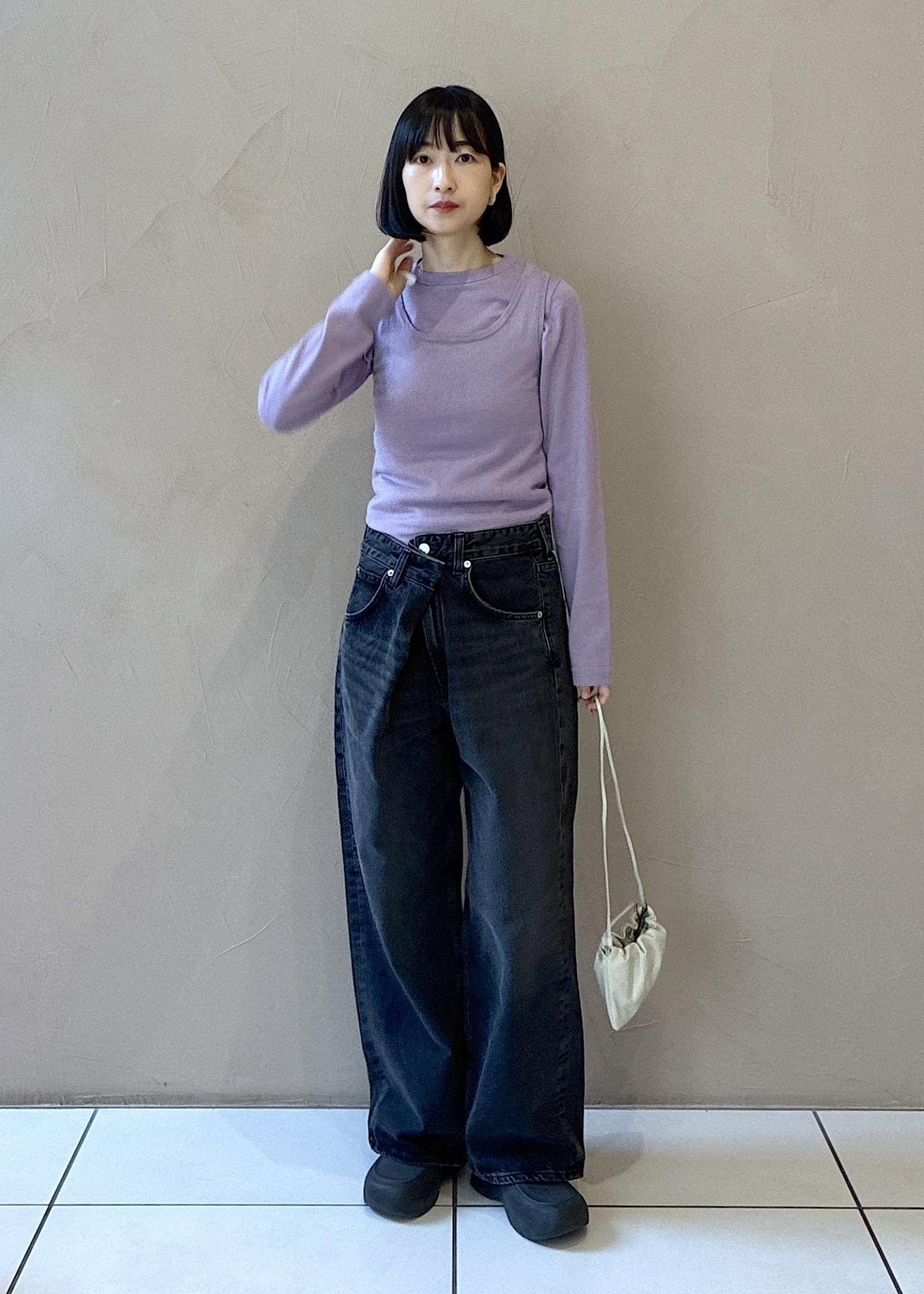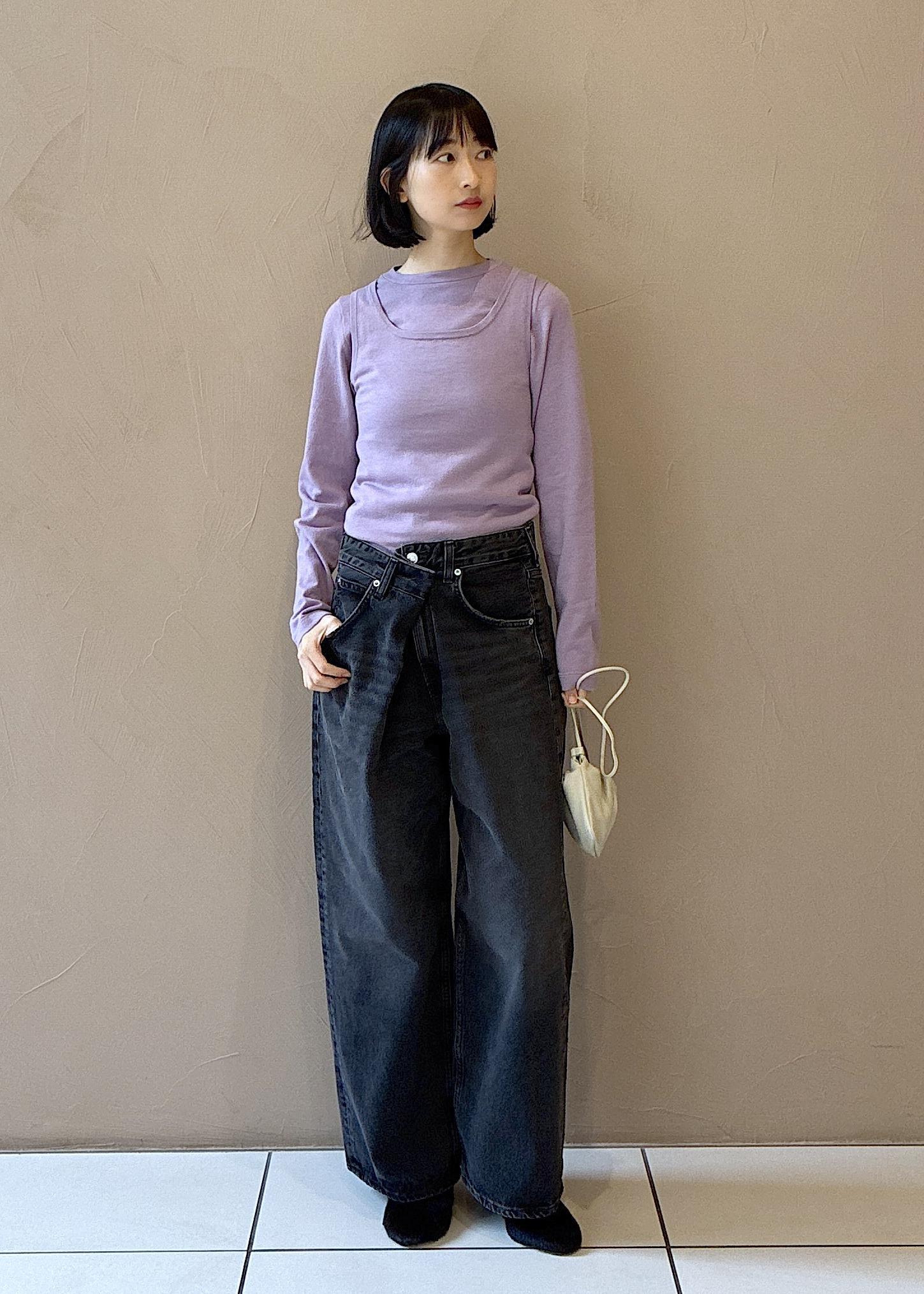 トップスはタンクトップと長袖プルオーバーをレイヤードしました。パープルかわいいです。