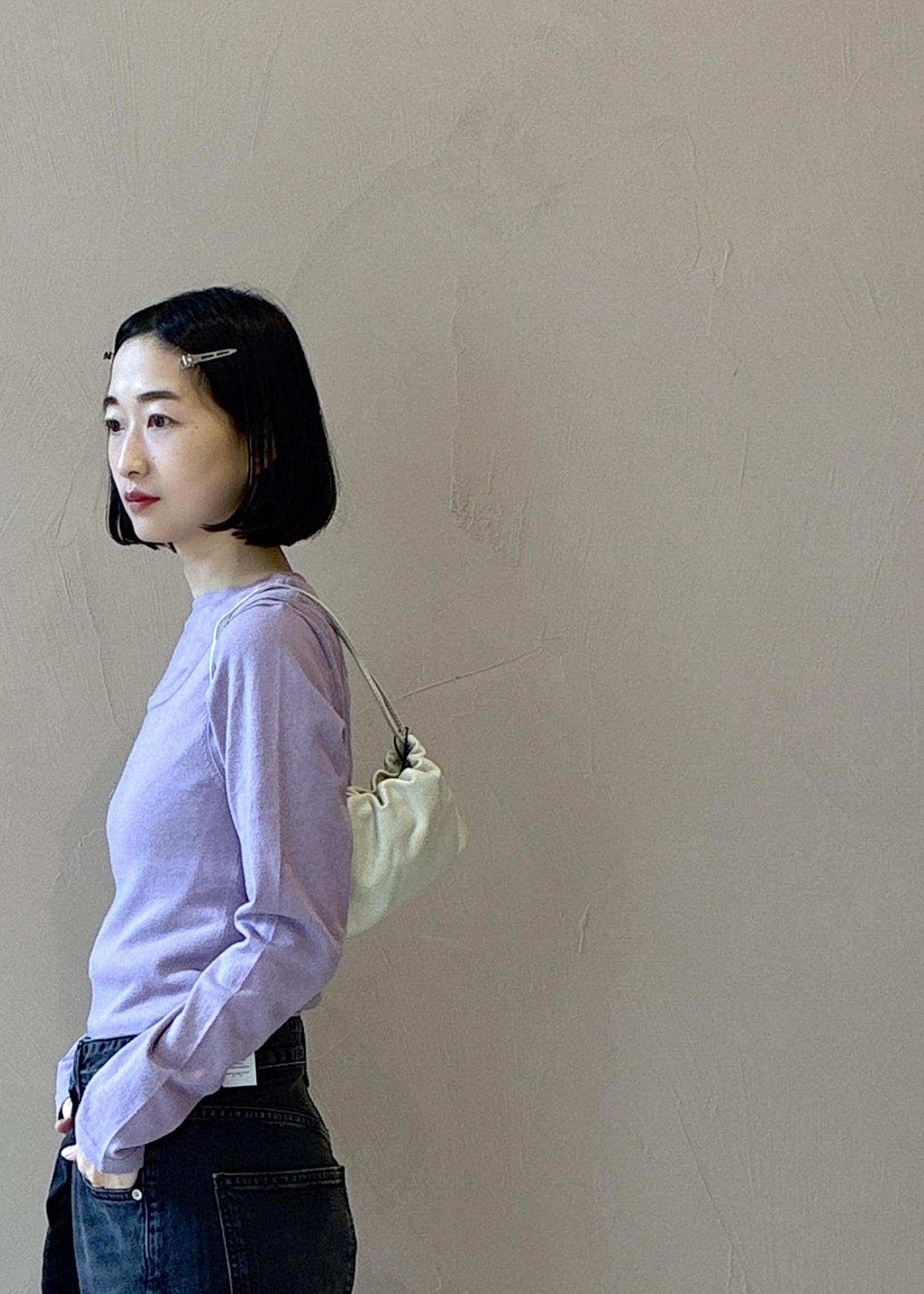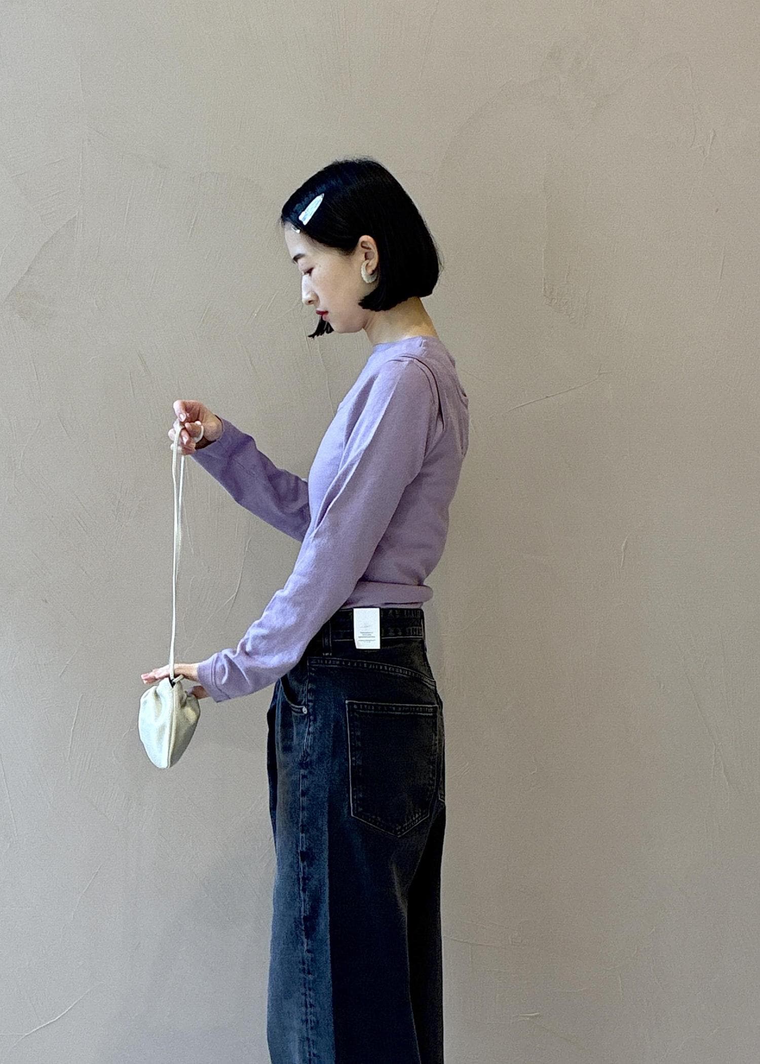 ミニ財布やリップ、スマホが入るかなという小さいサイズ感。スタイリングにも映えるバッグです。 -