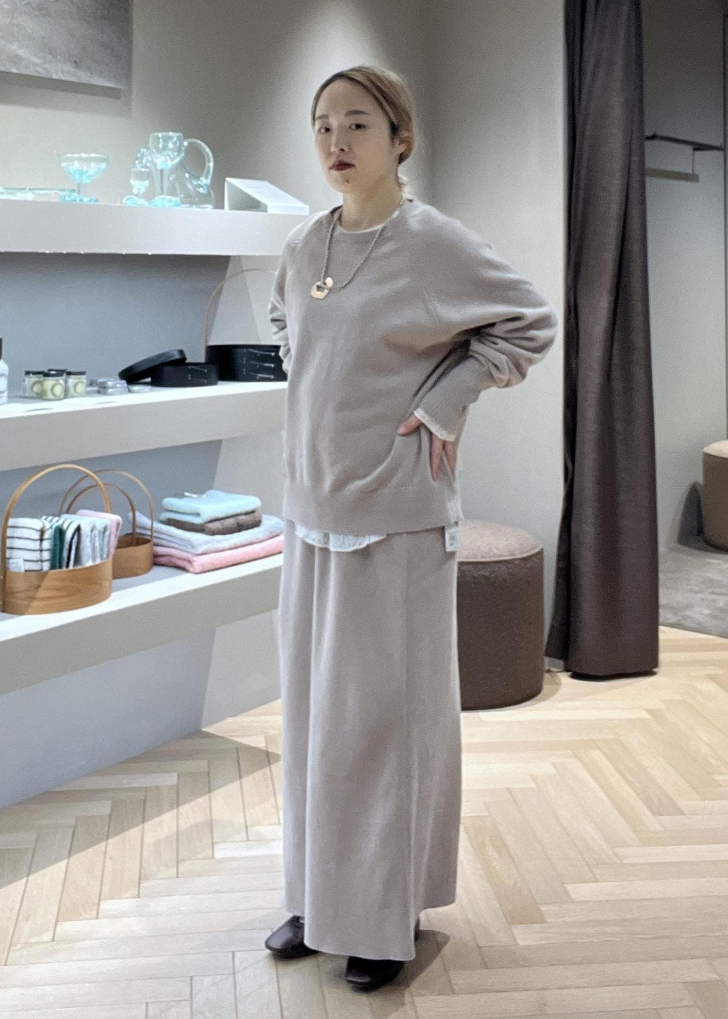 SALON adam et ropéクロップドプルオーバー-CreamyCotton /クリーミーコットン-ベージュ系 / F¥19,800レビュー伸ばすとお尻が半分隠れる長さ。