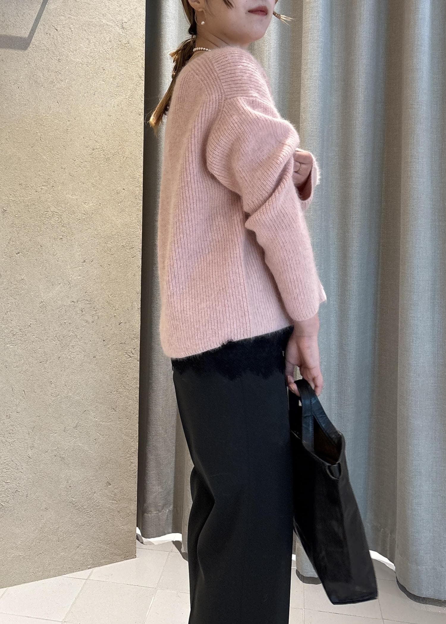 SALON adam et ropéフォックスウールボリュームスリーブニットピンク / F¥17,600レビュー毛足もしっかりあり、ふわっと柔らかい素材のニット。首元にゆとりもあるので詰まる事もなく、リラックス感があり着心地も良いです。