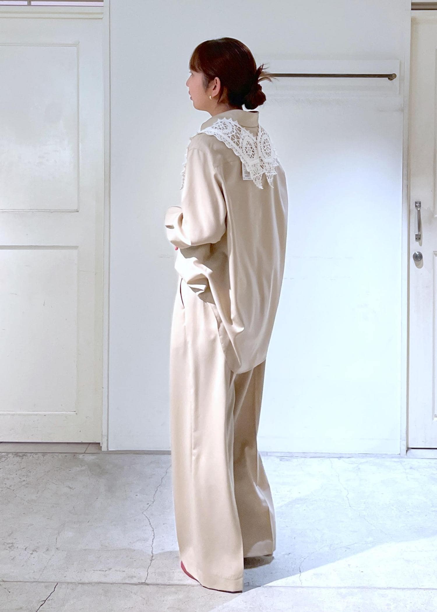 オーバーサイズながらも落ち感が綺麗なので、上品に着こなせます。