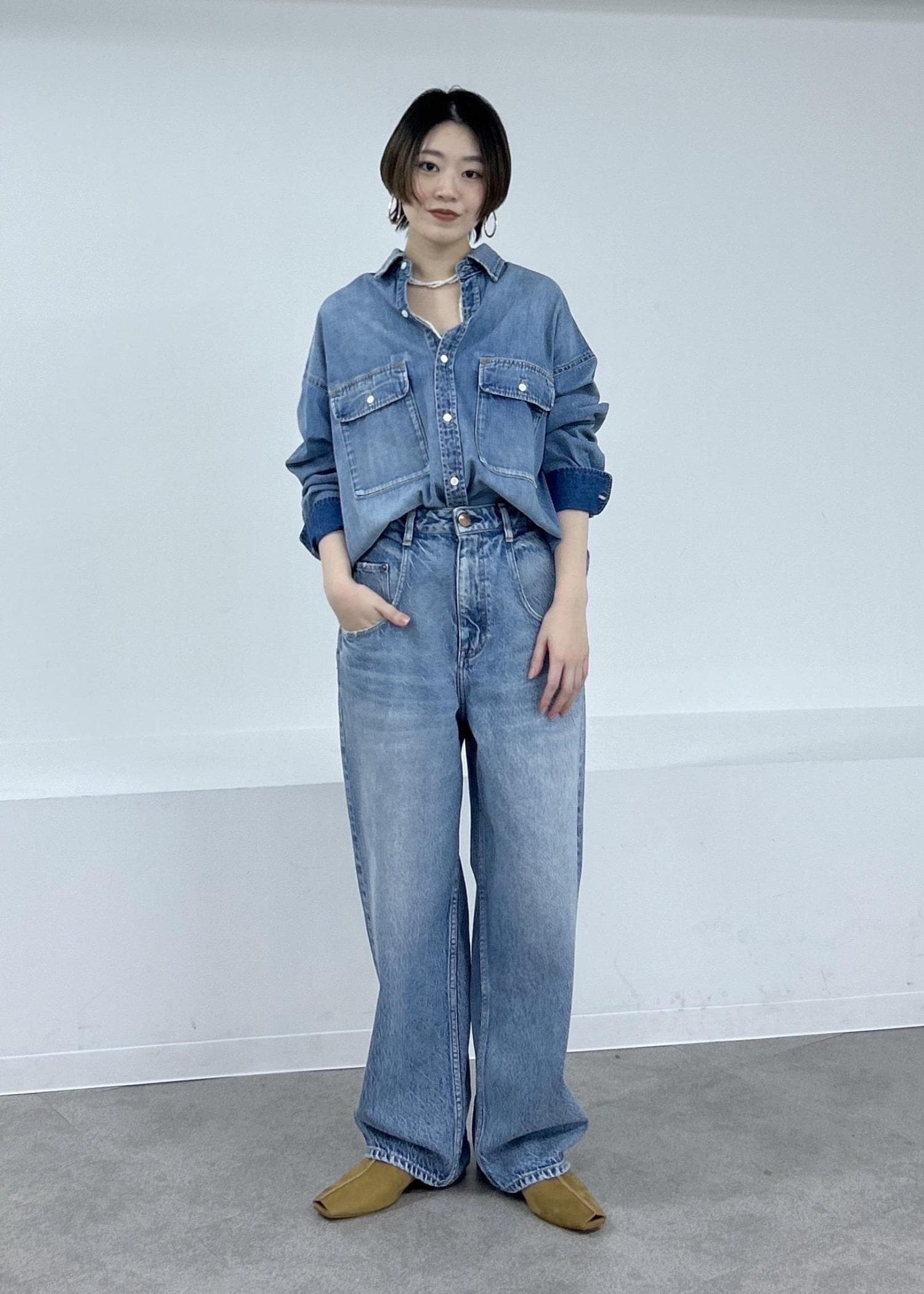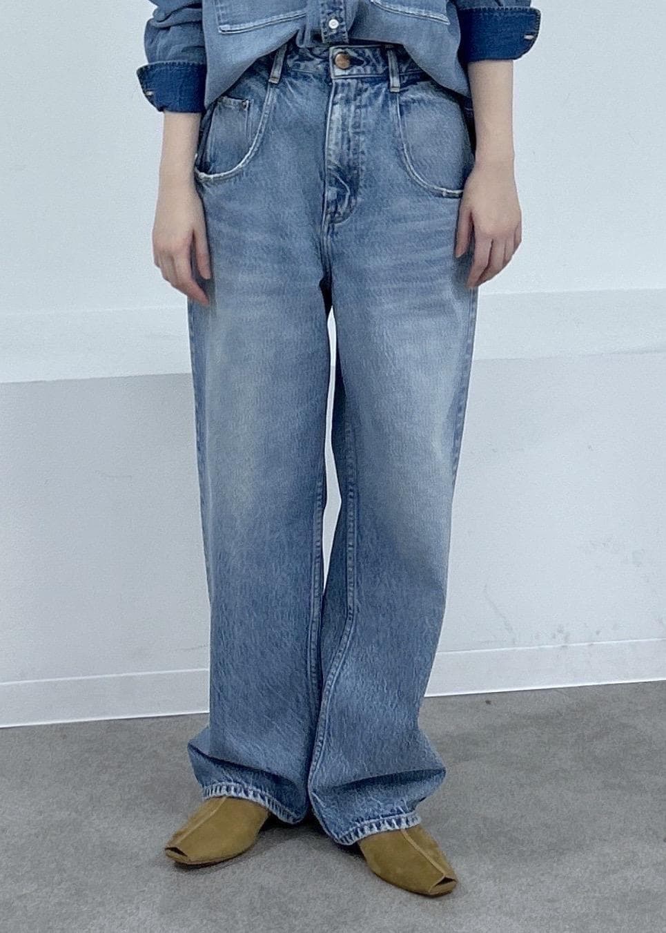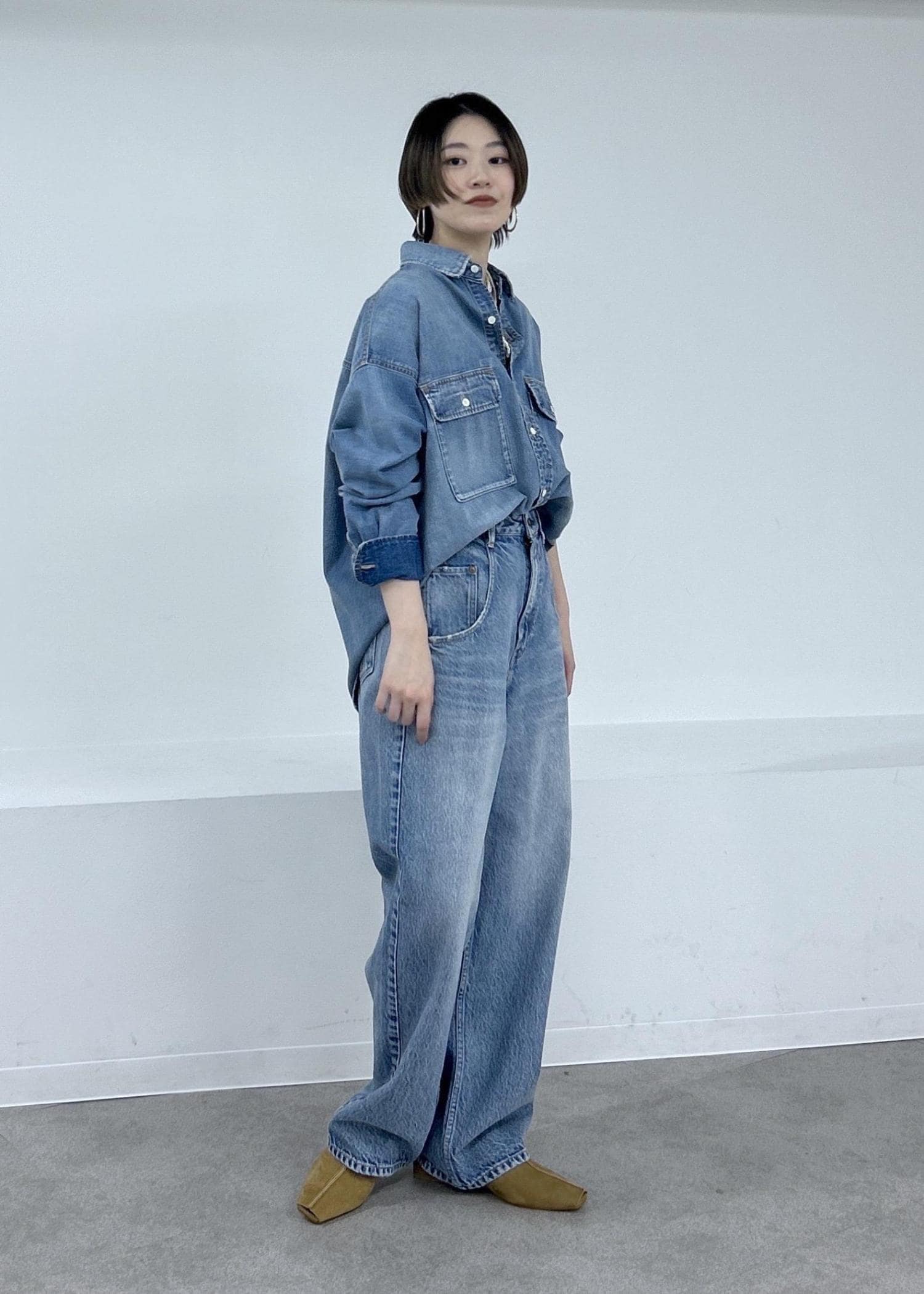 春らしい薄いインディゴカラーで柔らかな抜け感が出ます。