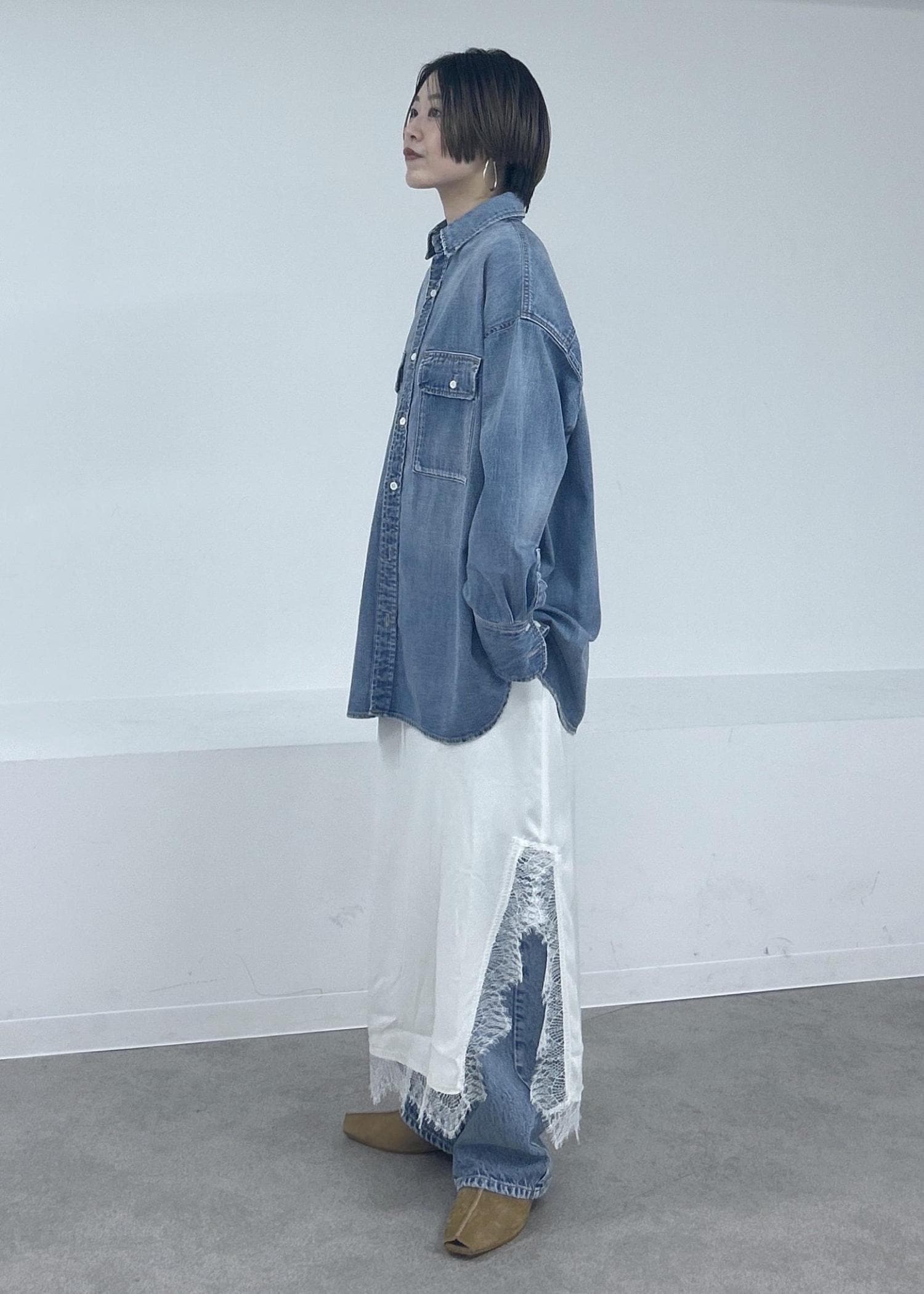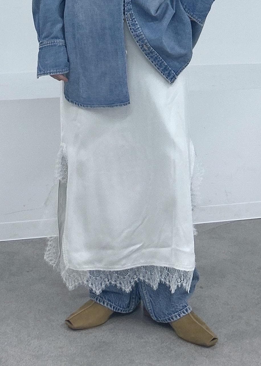 レースはビンテージサテンを使用しているのでデニムと相性抜群!