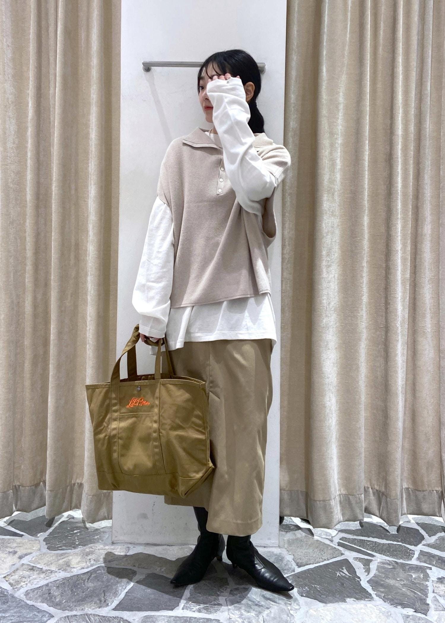 SALON adam et ropéコットンシルクカシミヤ2WAYジレプルオーバーベージュ / F¥19,800レビュー【サイズ感】