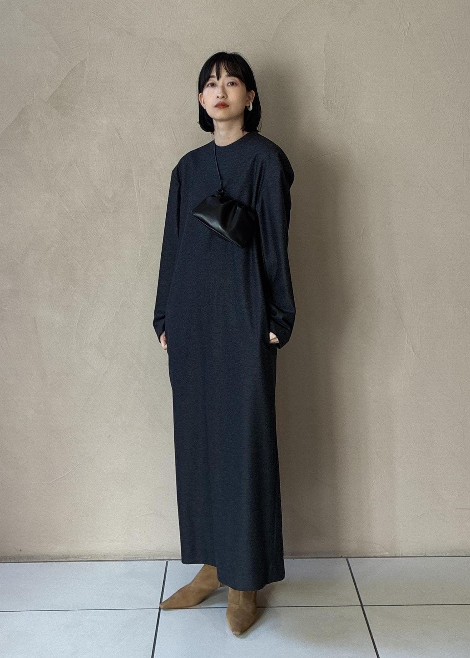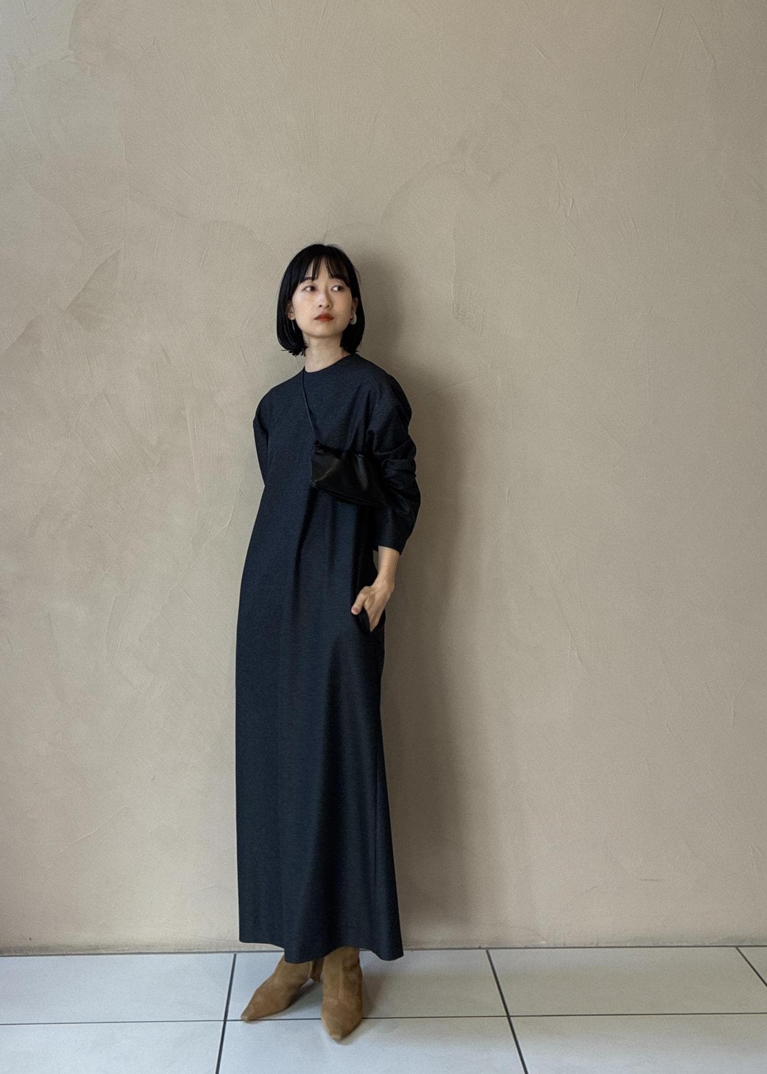 シンプルなのでベルトやネックレスなどアクセサリーを差してスタイリングできたらいいかなと思います。