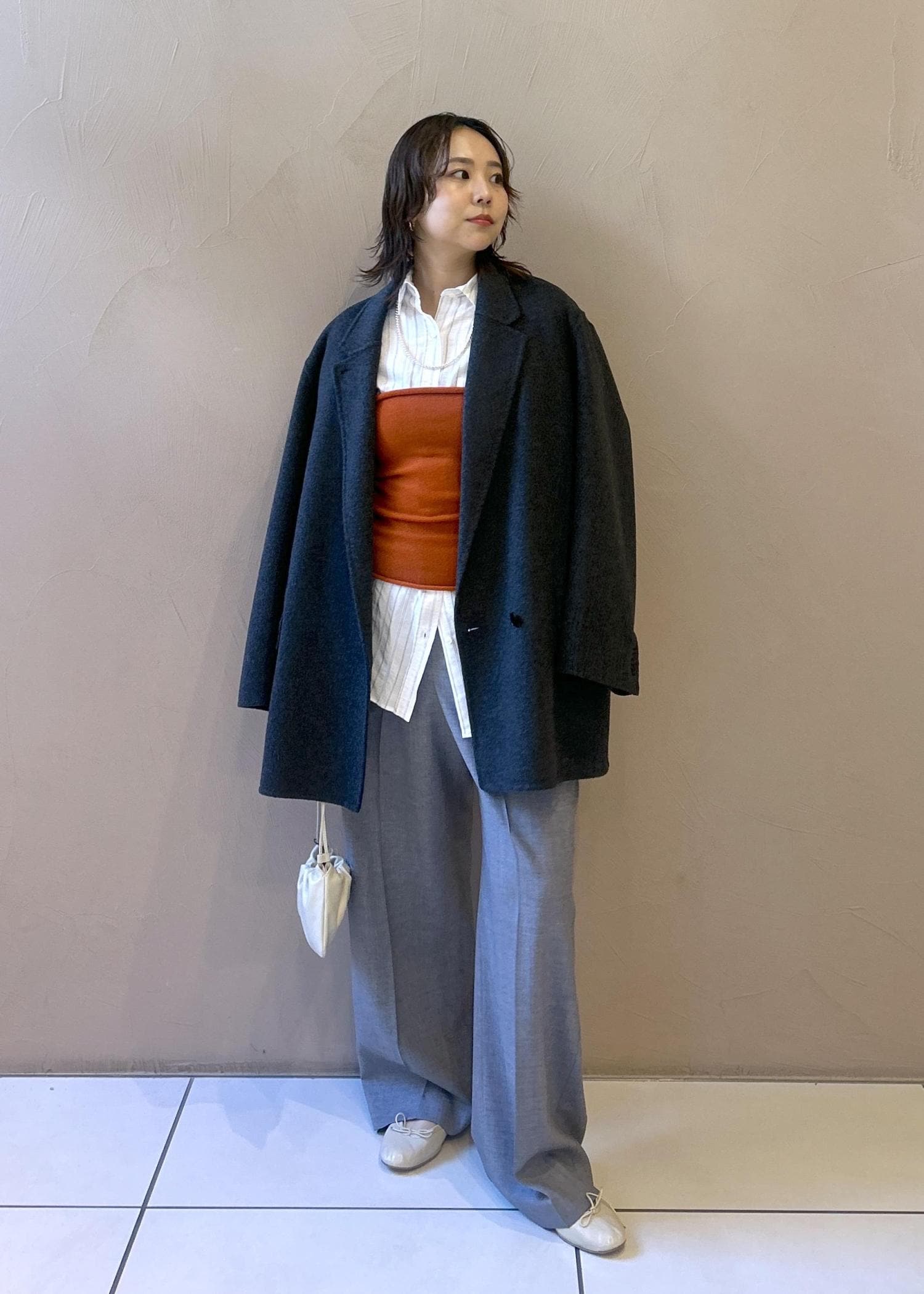 SALON adam et ropéシャルムリバージャケットコート / ミドルウールコートチャコール / F¥41,580レビューヒップが隠れるくらいの長めの丈感、身幅もゆったりとしたオーバーサイズなつくりです。