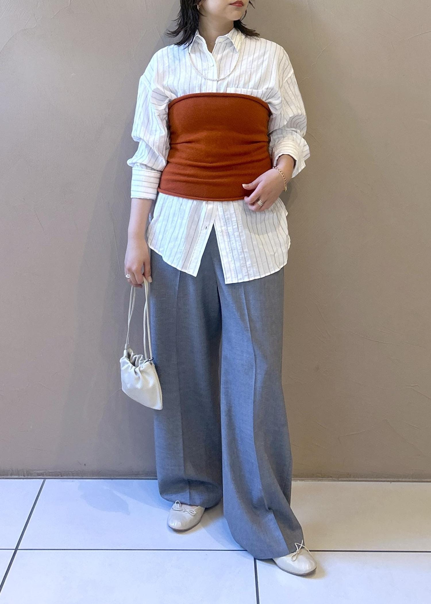 お尻周りやもも周りを拾いにくいシルエットで体型カバーも叶う一枚です。