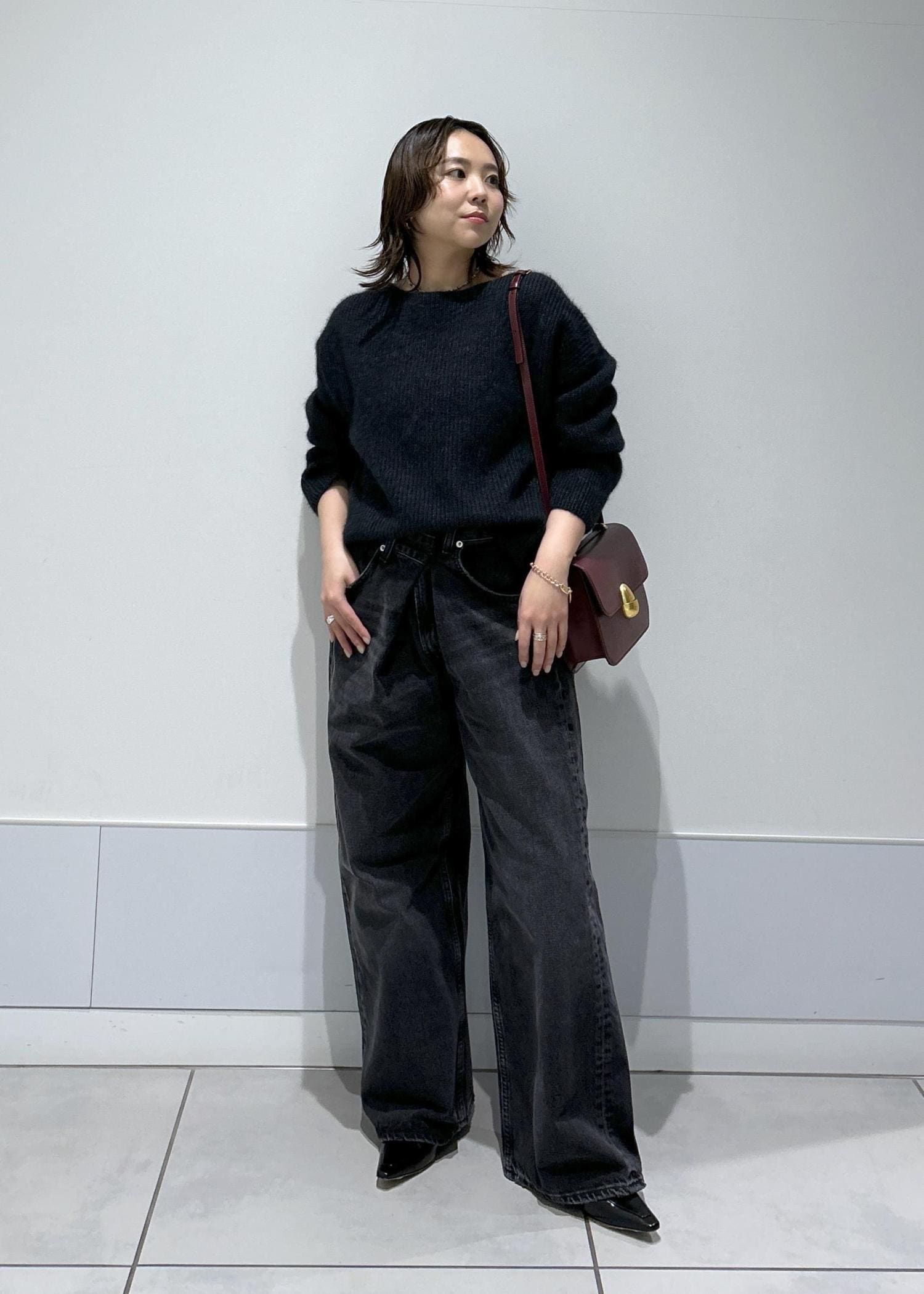 着丈はやや短め、身幅はゆったりとしているので低身長の方でもバランスよく着用いただけます。