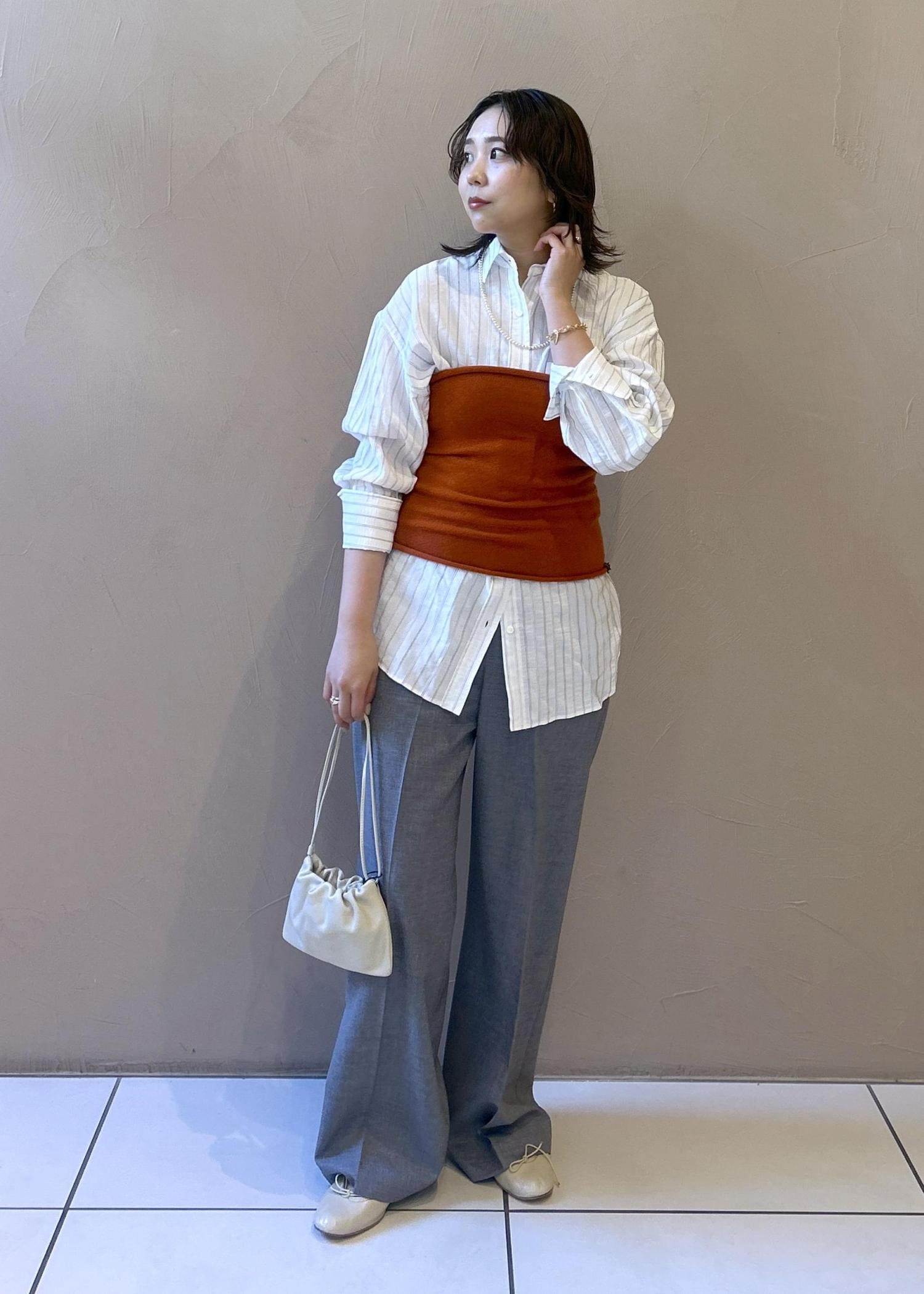 シャツ×ビスチェスタイル