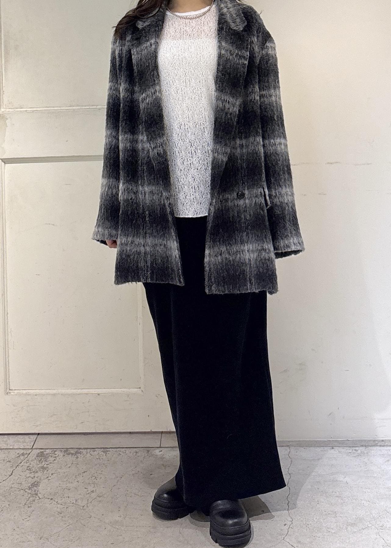 SALON adam et ropéBALLIシャギージャケットコート / セットアップ対応グレー系 / F¥45,430レビュー丈はヒップの下あたりまでの長さです。