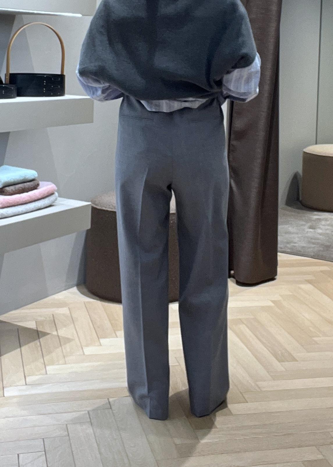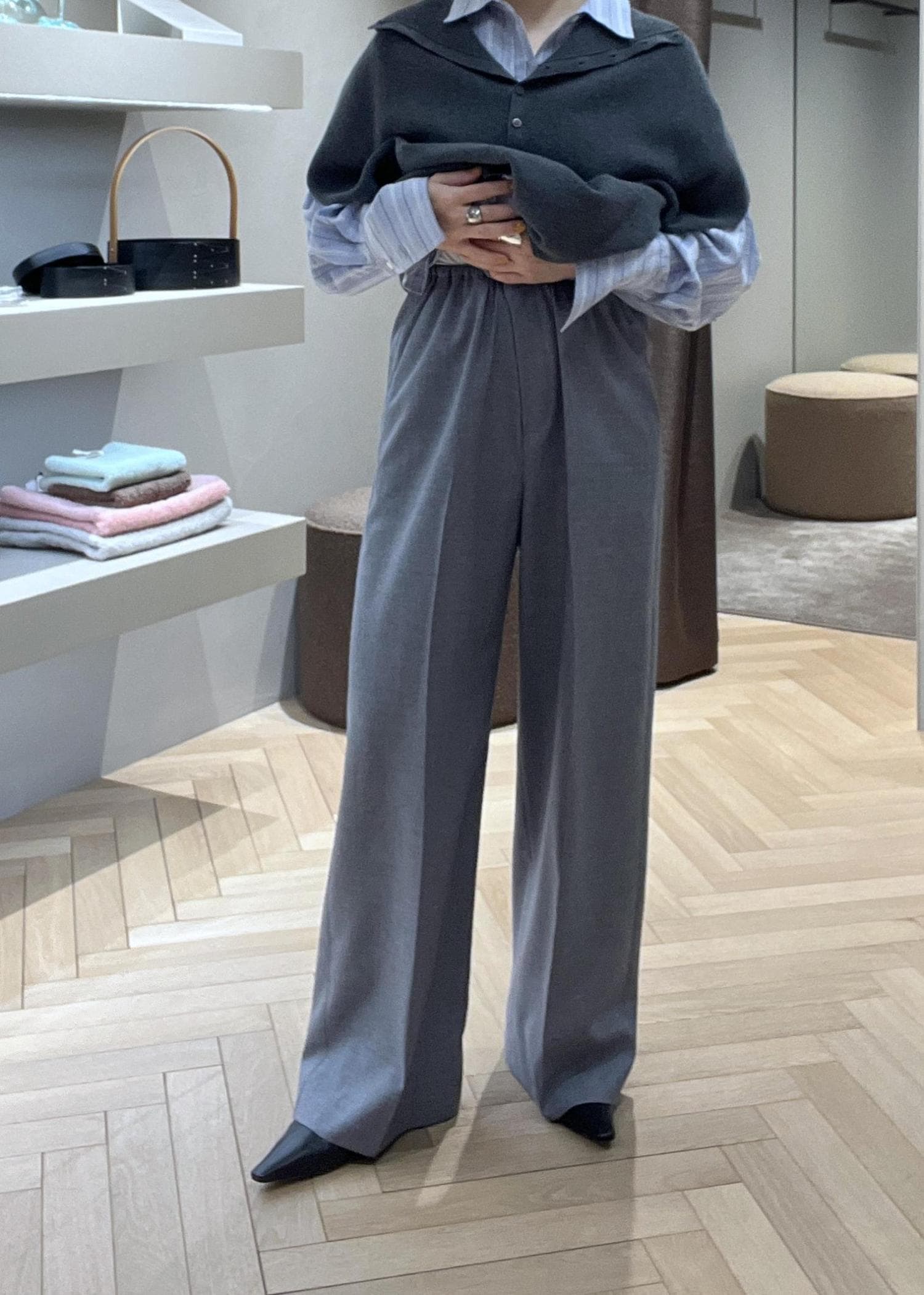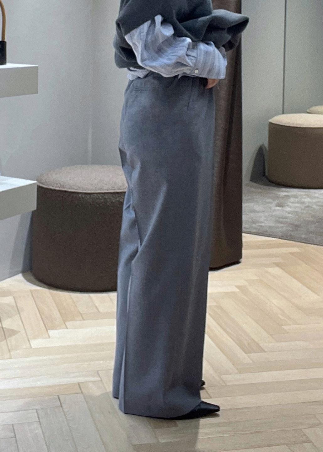 ウエストは紐、お尻や太もも回りもゆったりしていてストンと落ちる形。
