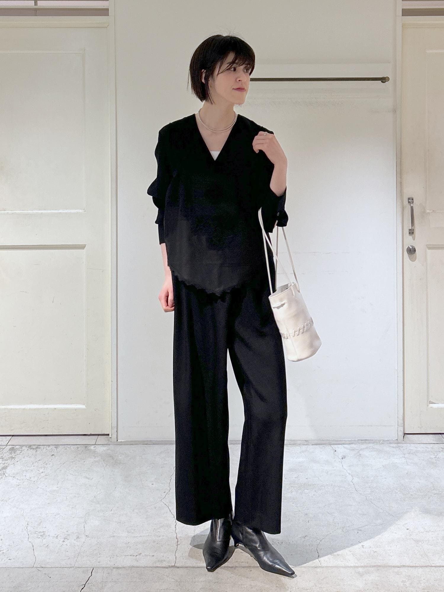 パンツはストンと落ちるラインで体型を選ばず、単品使いしやすいです。