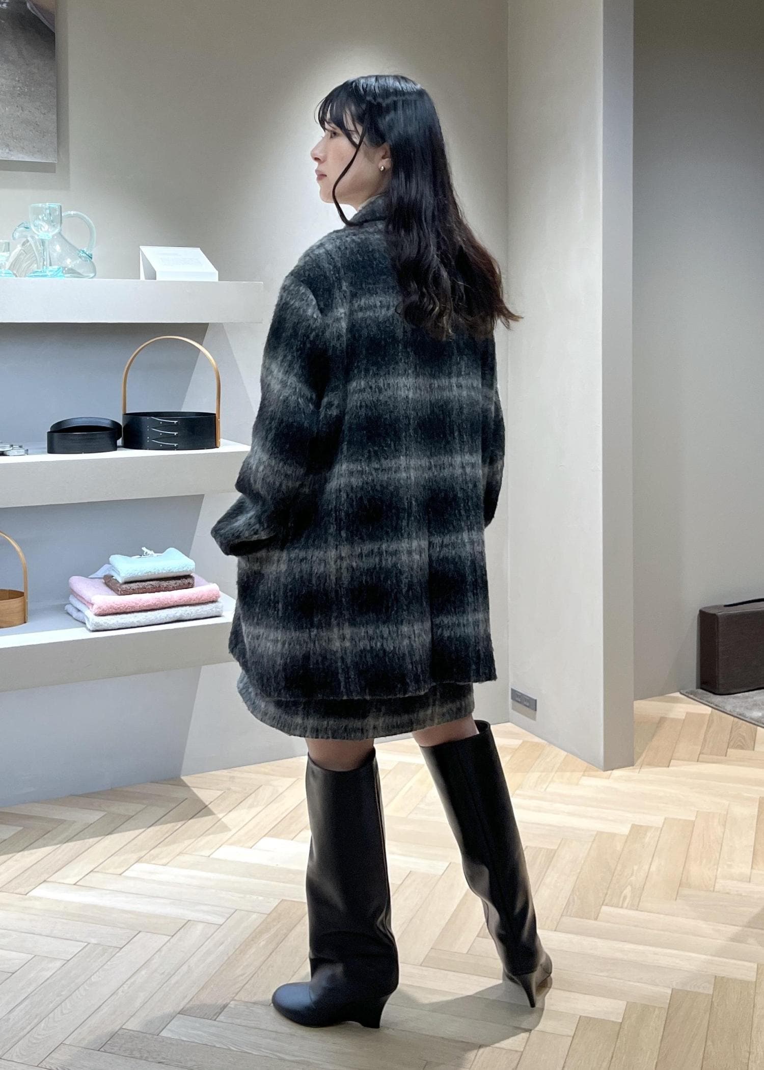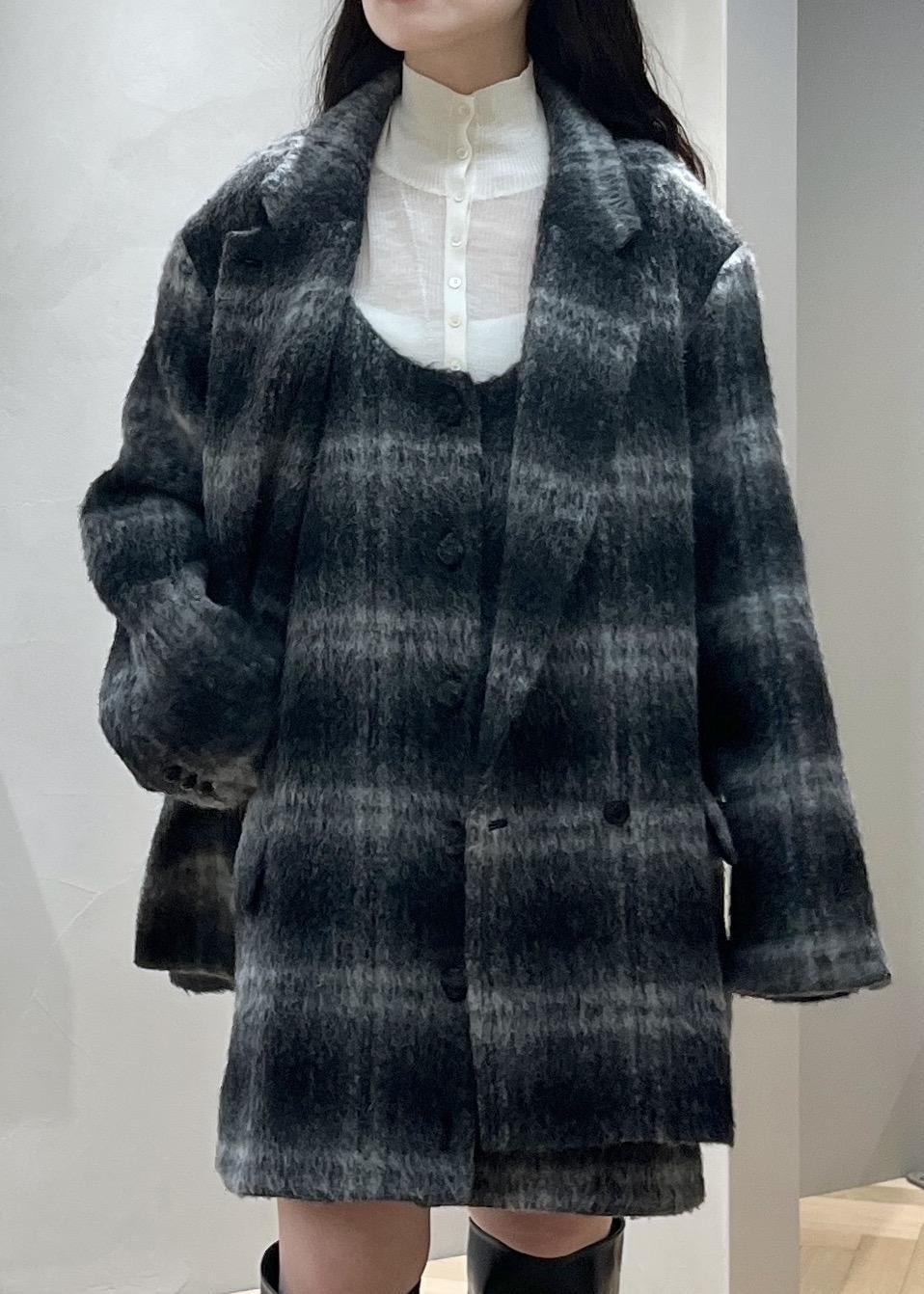イタリアBALLI社製の高級素材を使用。アルパカ混のシャギー素材でとても軽くて暖かいです。華やかなチェック柄が存在感あります。 -