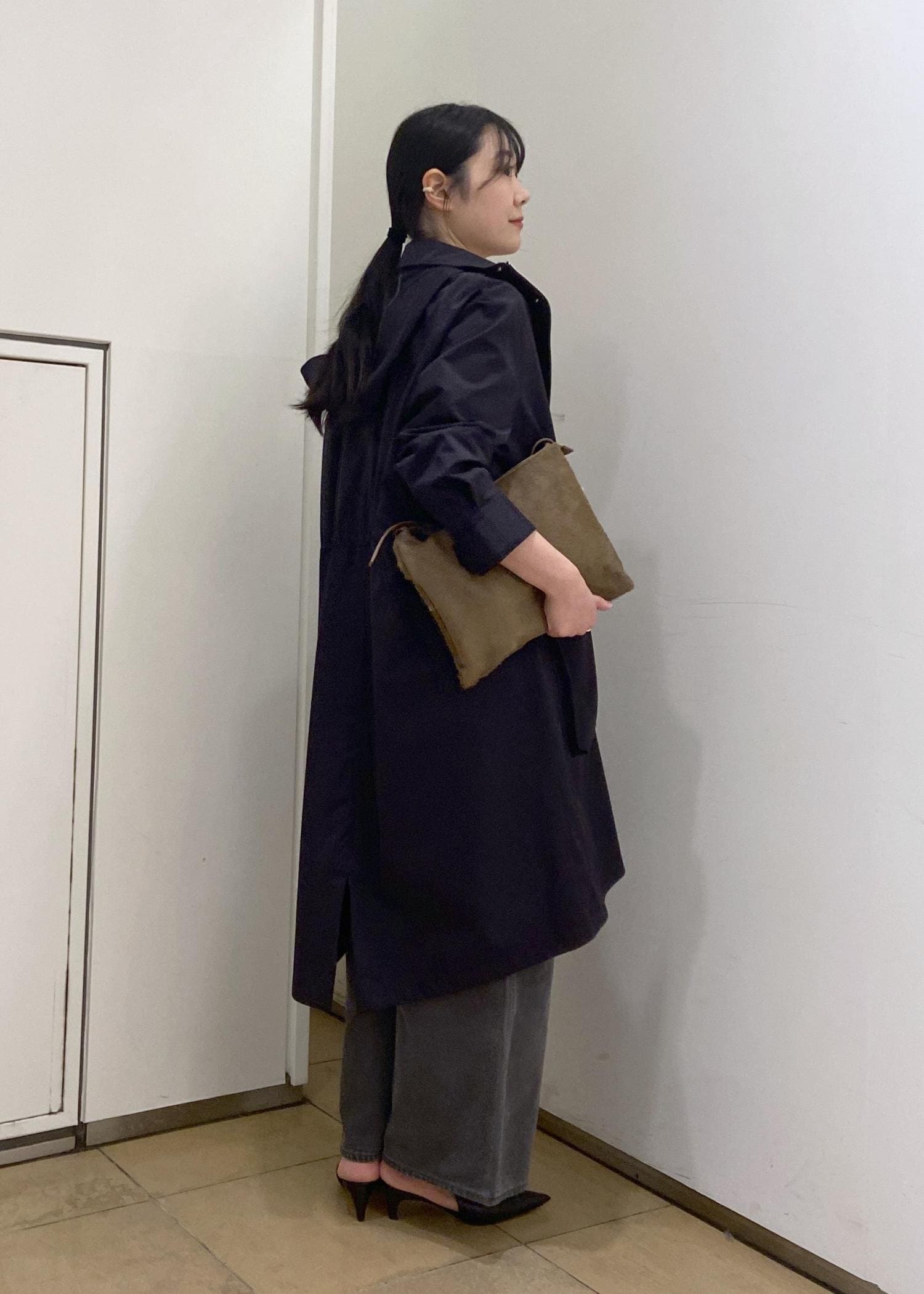 オーバーサイズですが、ウエストコードを絞ってメリハリのあるスタイリングにも。