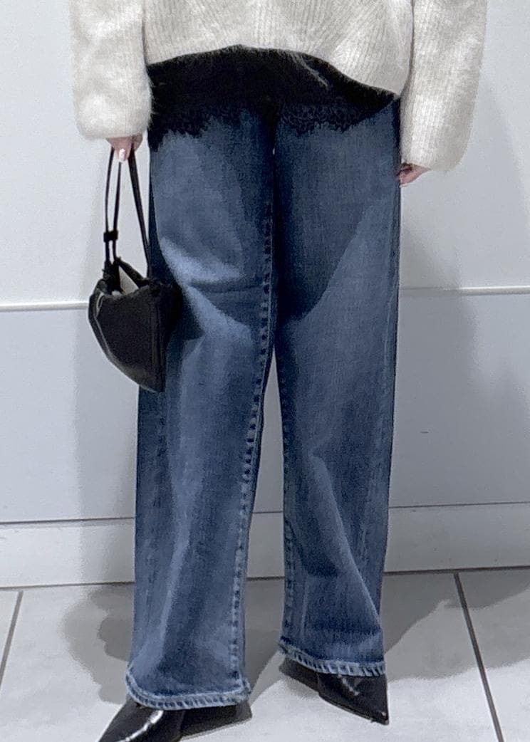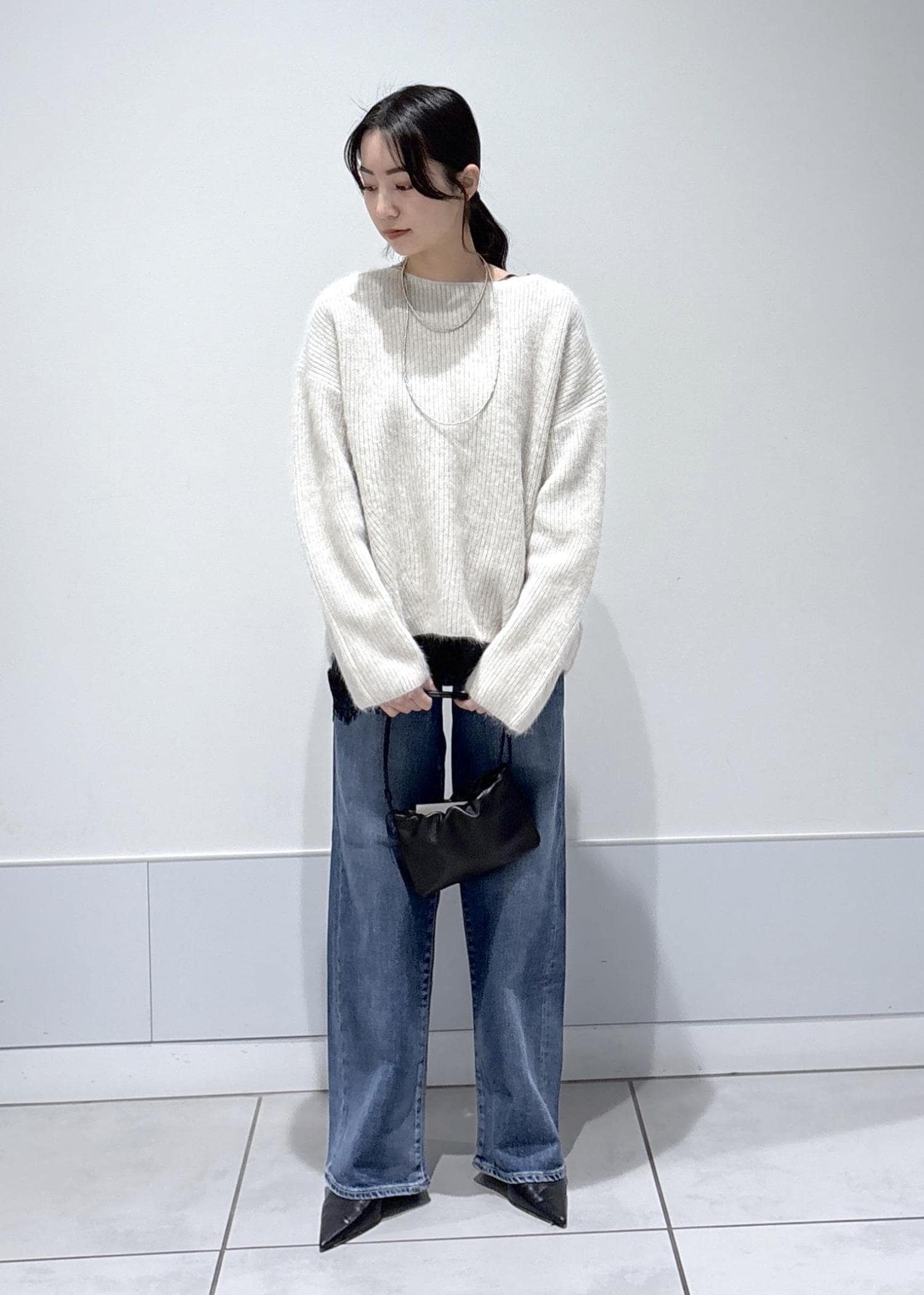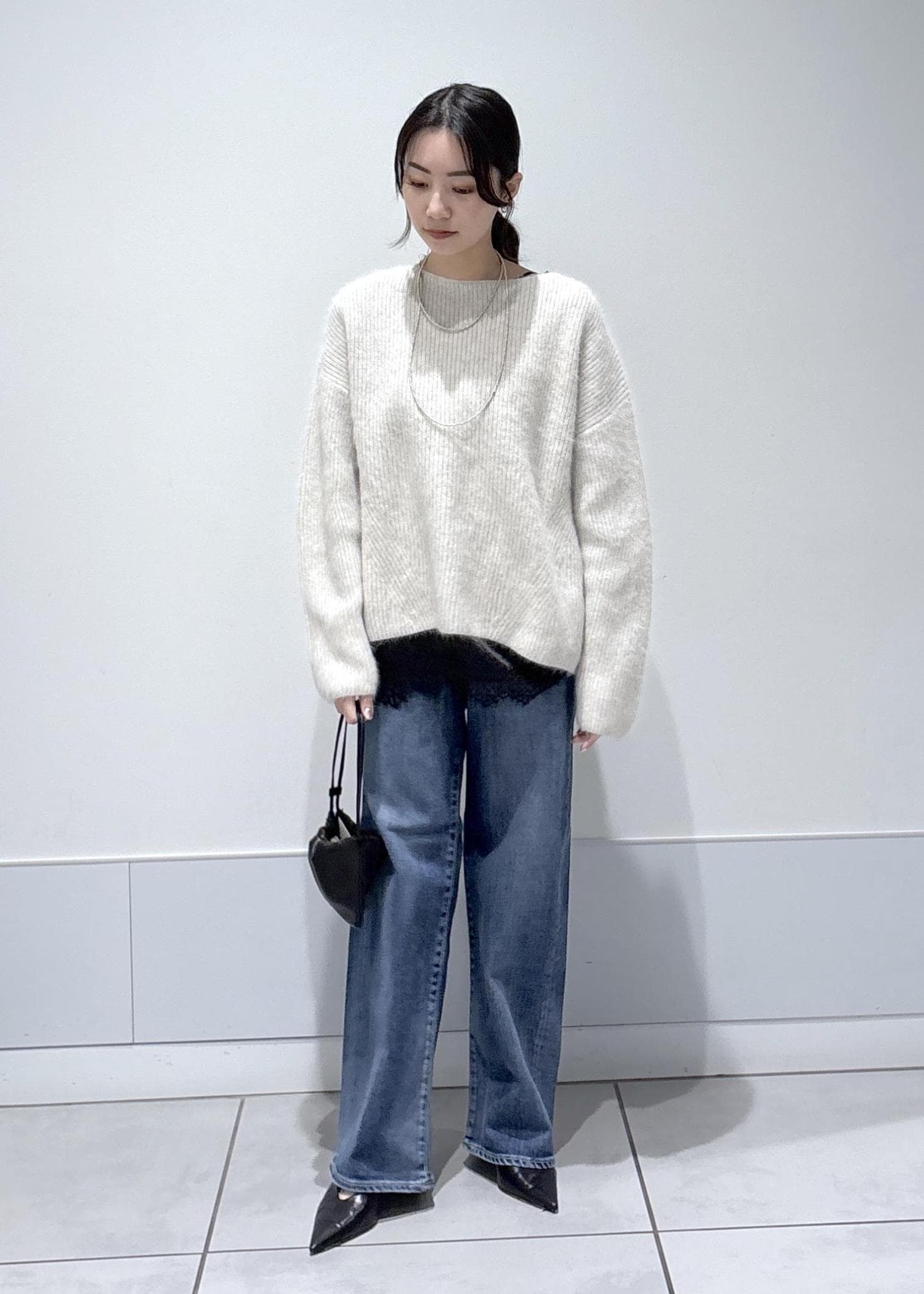 柔らかいニットに、ストレートデニムを合わせたシンプルなスタイルに仕上げました。足元はブラックシューズで引き締めて、ラフすぎないバランスにしました。