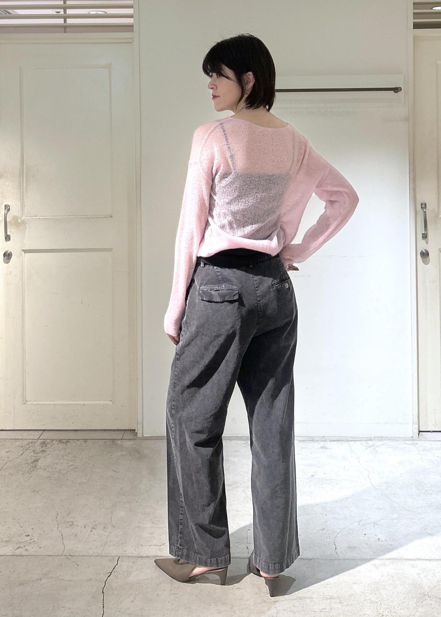 SALON adam et ropéカシミヤリネンシアーニットプルオーバーピンク / F¥16,500レビュー身長171cmで、丈は腰骨にかかるくらいの長さ。柔らかくてとても肌触りが良いです。シアー素材で抜け感があり、1枚で着てもレイヤードしてもオススメです。
