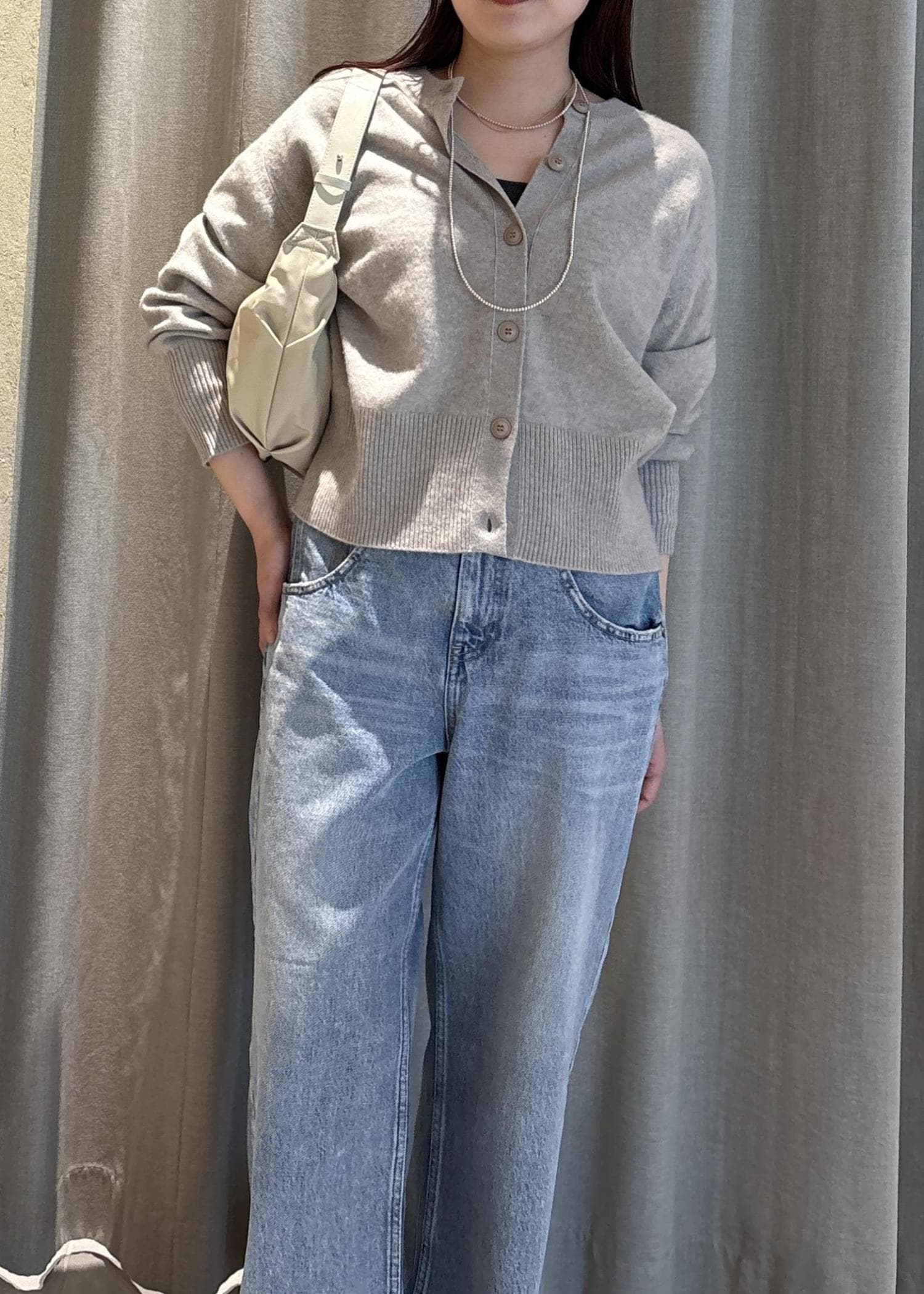 SALON adam et ropéカシミヤクルーネックニットカーディガンベージュ系 / F¥17,600レビューカシミヤなので柔らかく軽い着心地です。丈が短すぎないのも嬉しく、シャツやカットソーと合わせて着用できるサイズ感です。