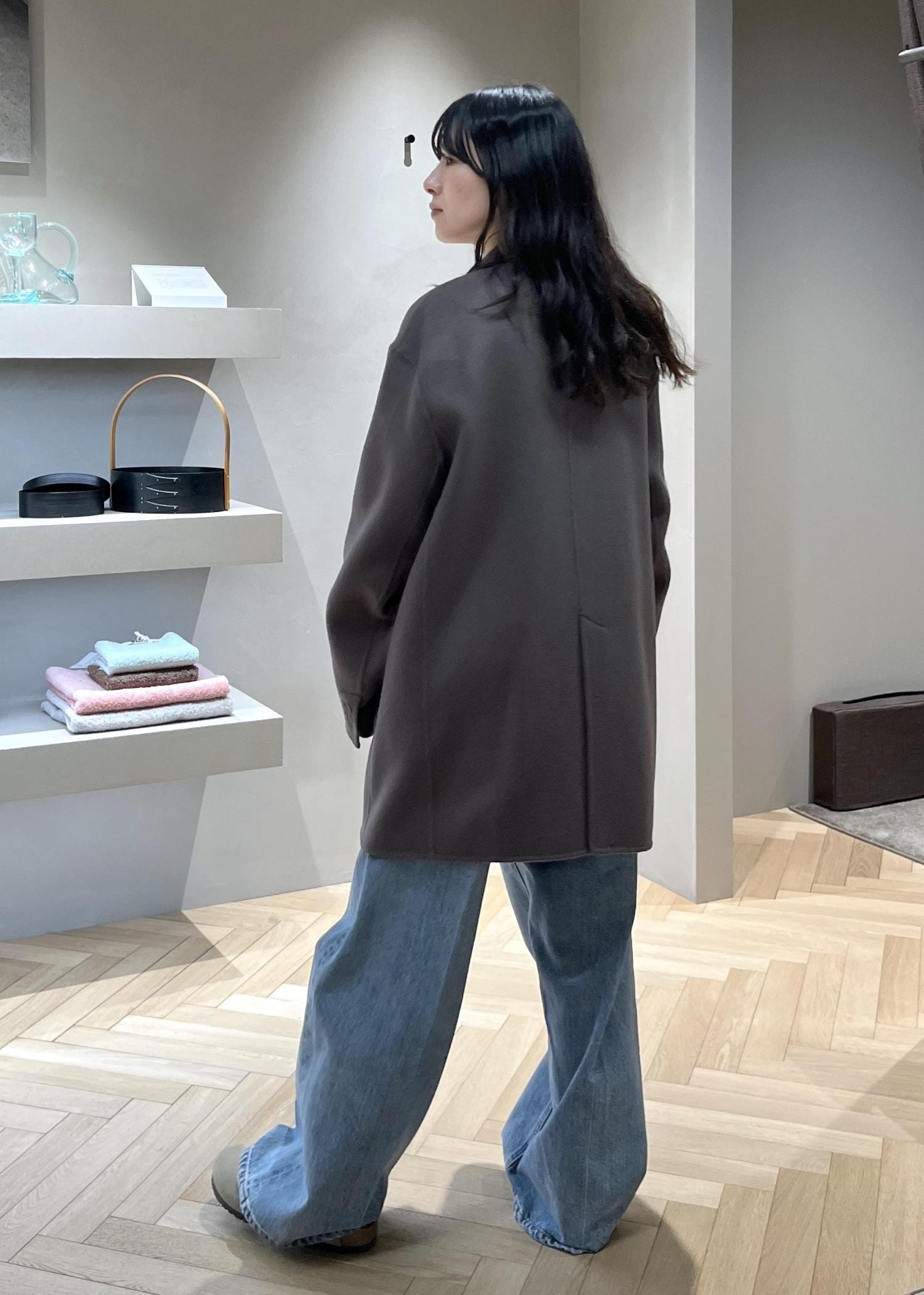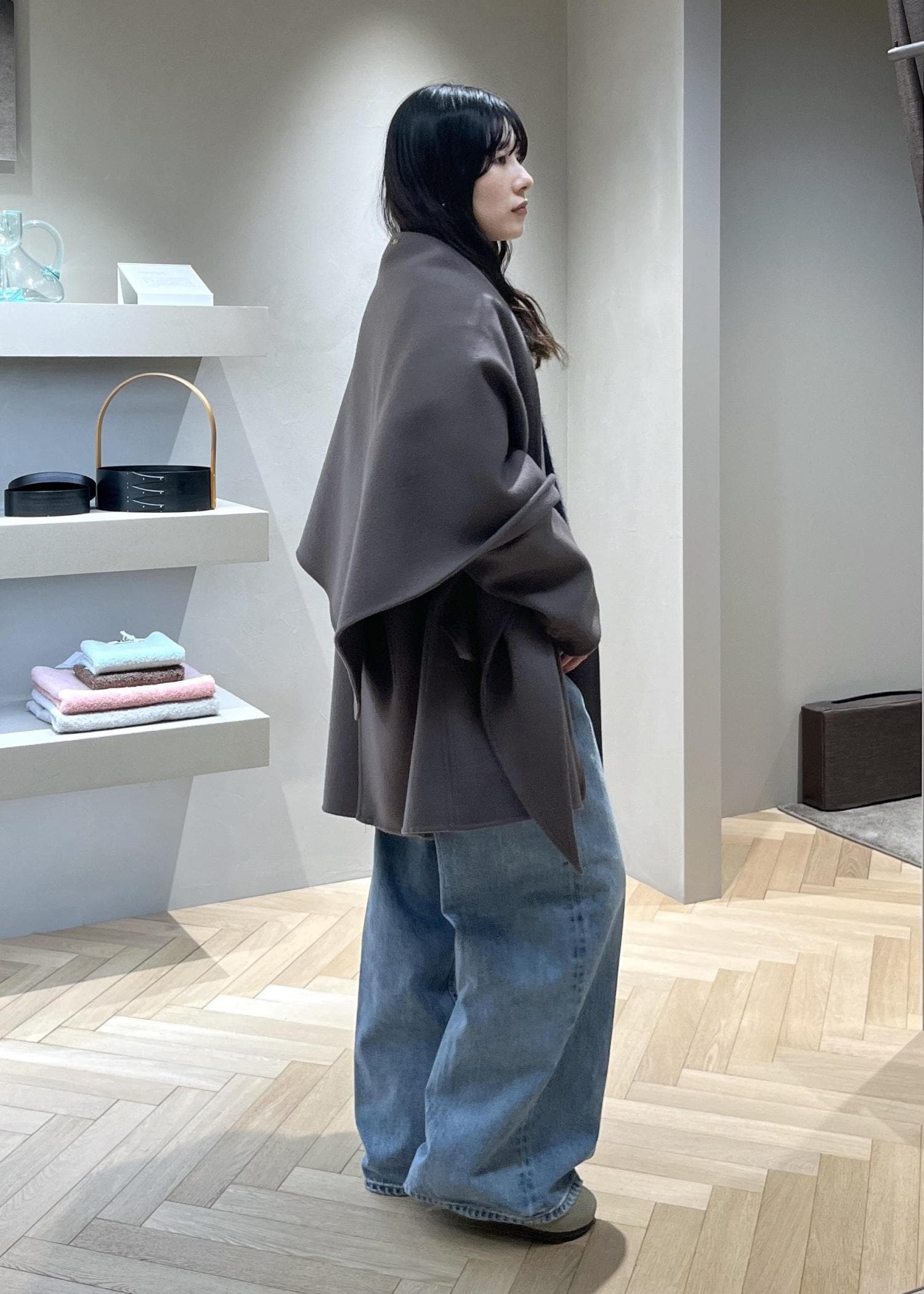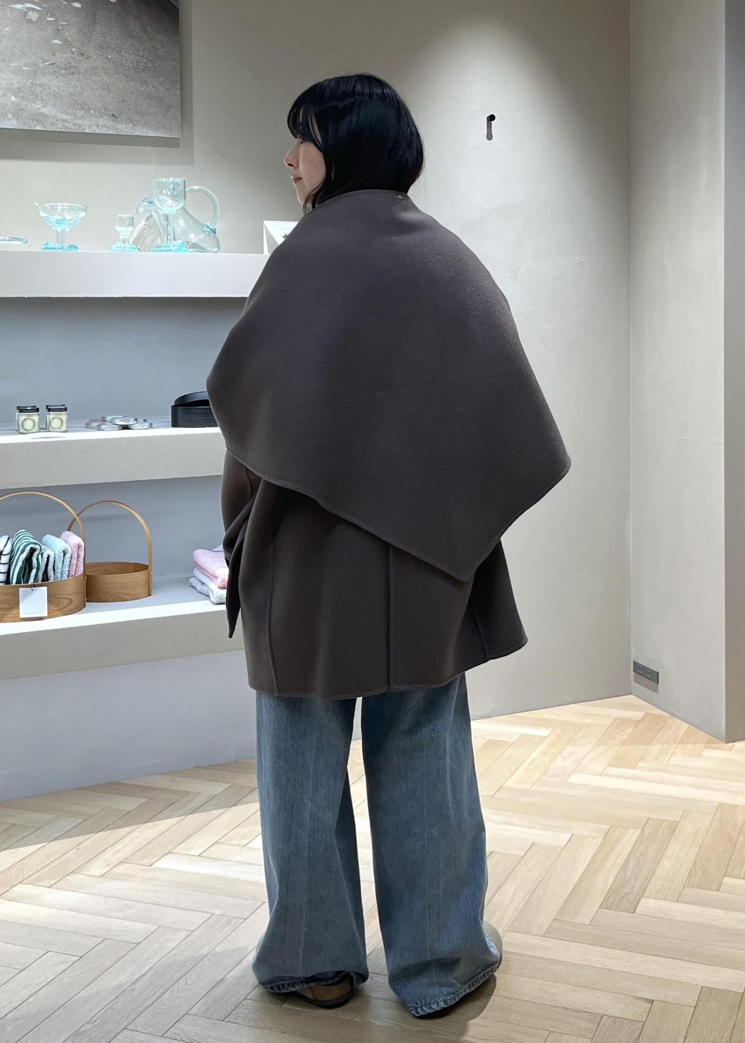 「スーパー140's」の高級羊毛を使用。一枚仕立てでとても軽く、薄手ですがしっかりと真冬の寒さを防寒できる保温力があります。同素材のジャケットコートの上から、ニットの上からなど少し寒い時にプラスワンで使えます。 -