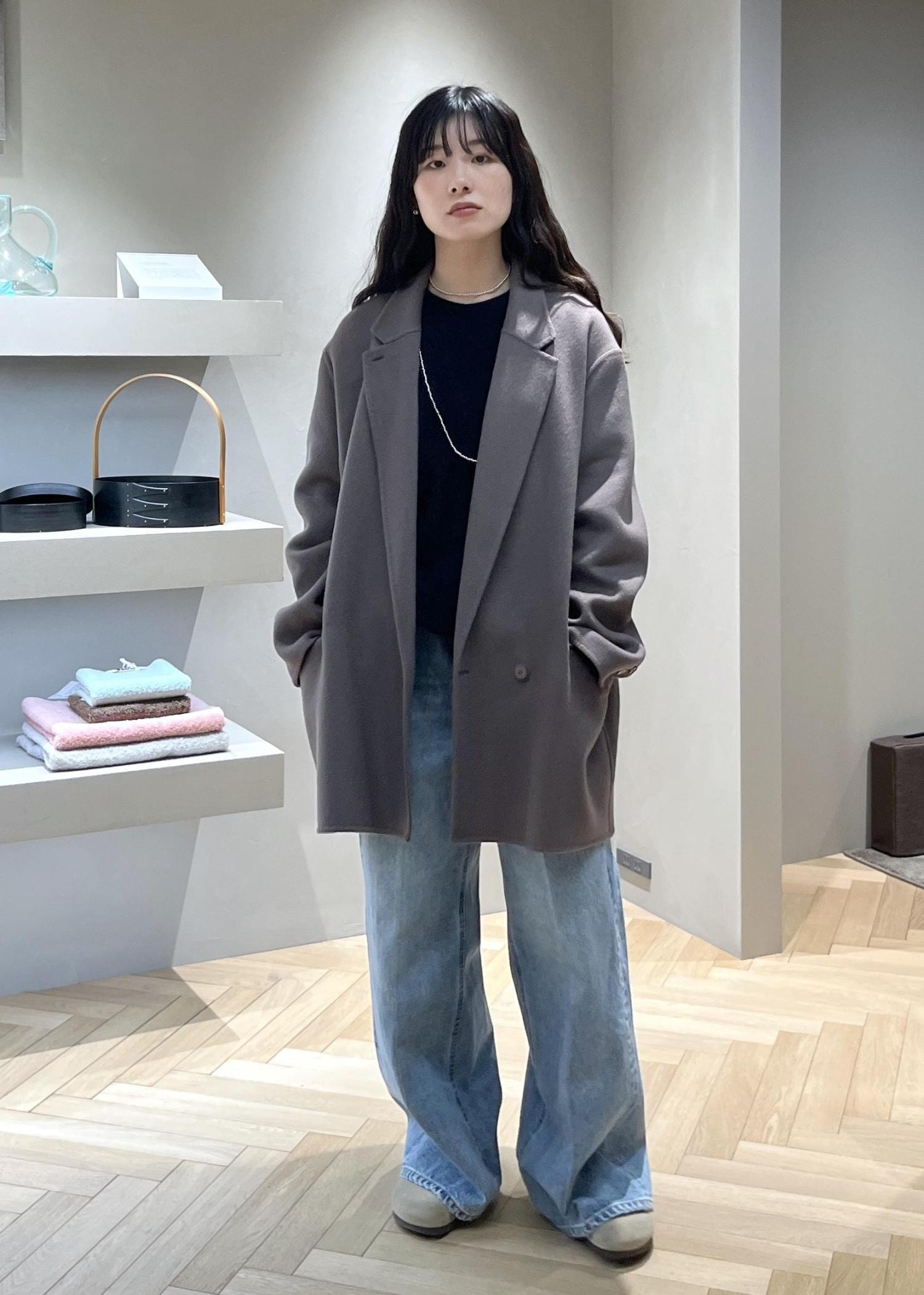 「スーパー140's」の高級羊毛を使用。一枚仕立てでとても軽く、薄手ですがしっかりと真冬の寒さを防寒できる保温力があります。ジャケットデザインなので、さっと羽織れるのも気軽で◎ -