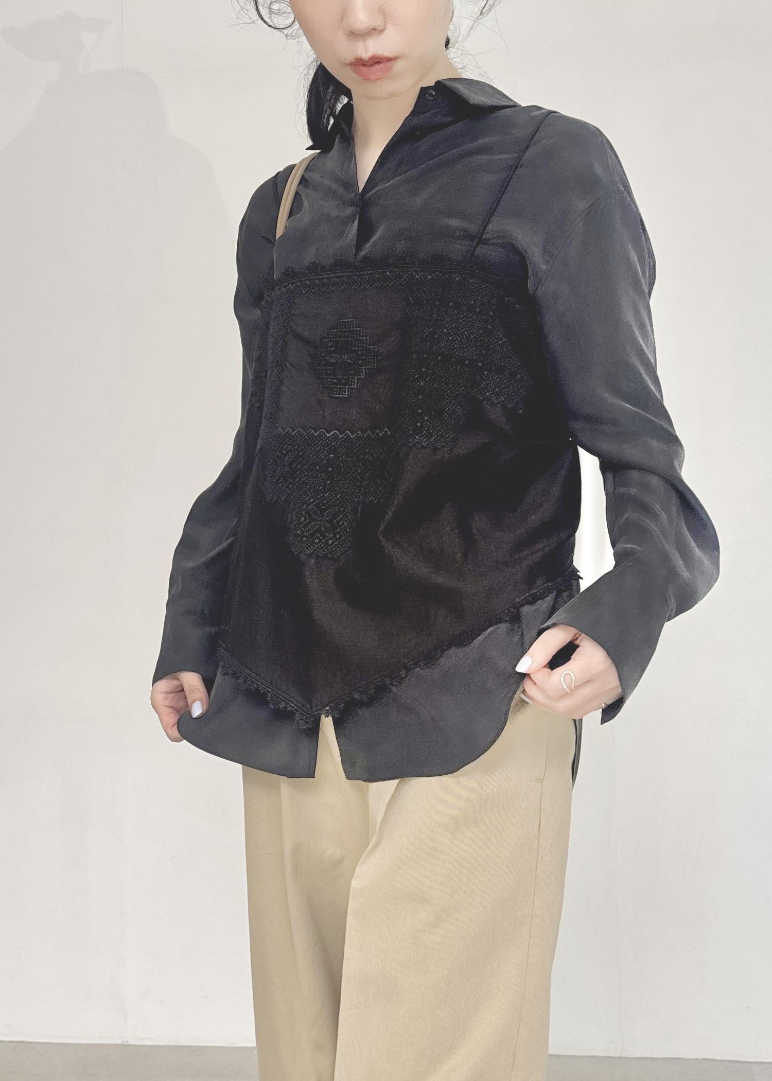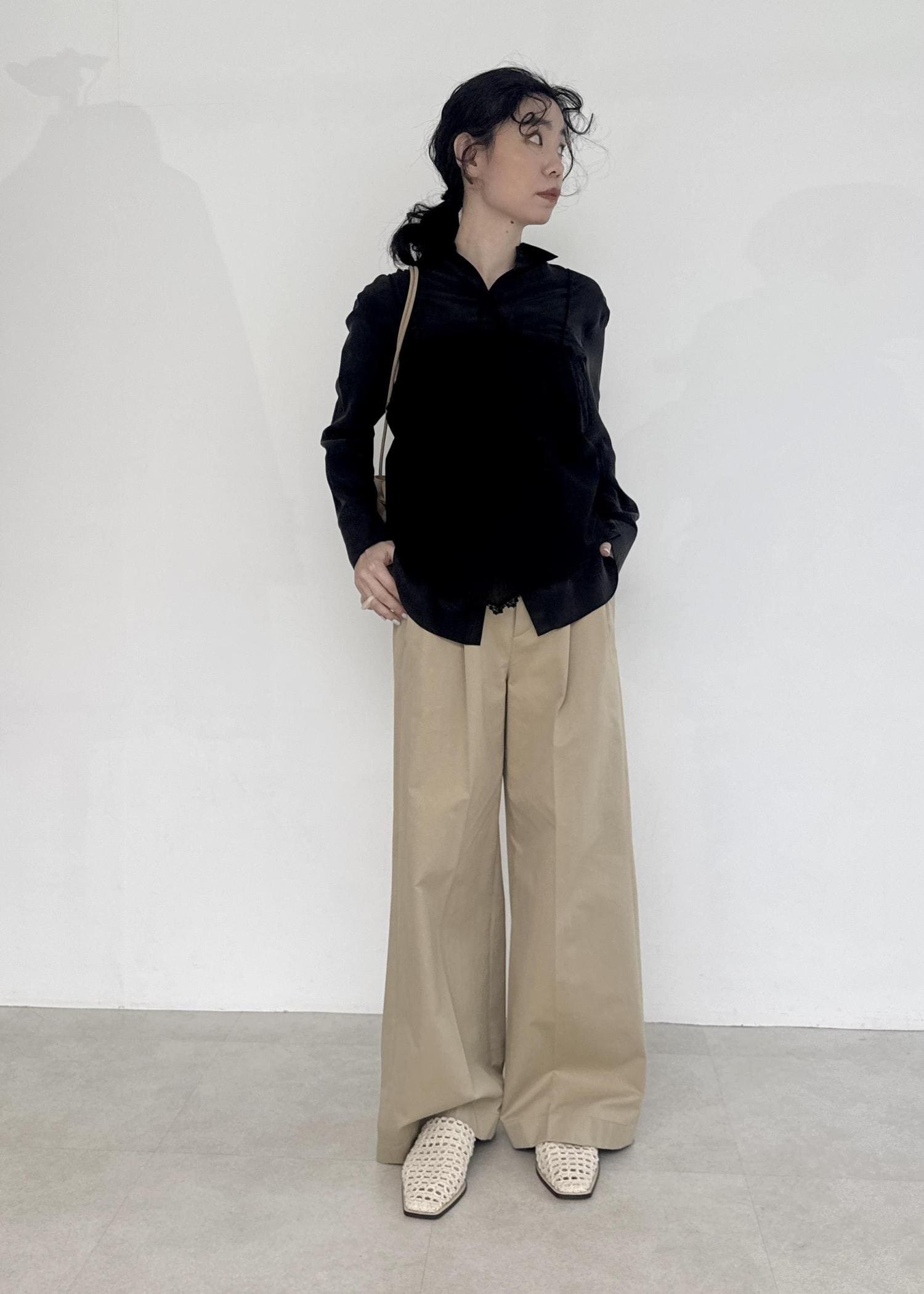 お家で水洗いもできて、特に黒は汚れも目立ちにくくデイリーに使えるシルクシャツです。 -