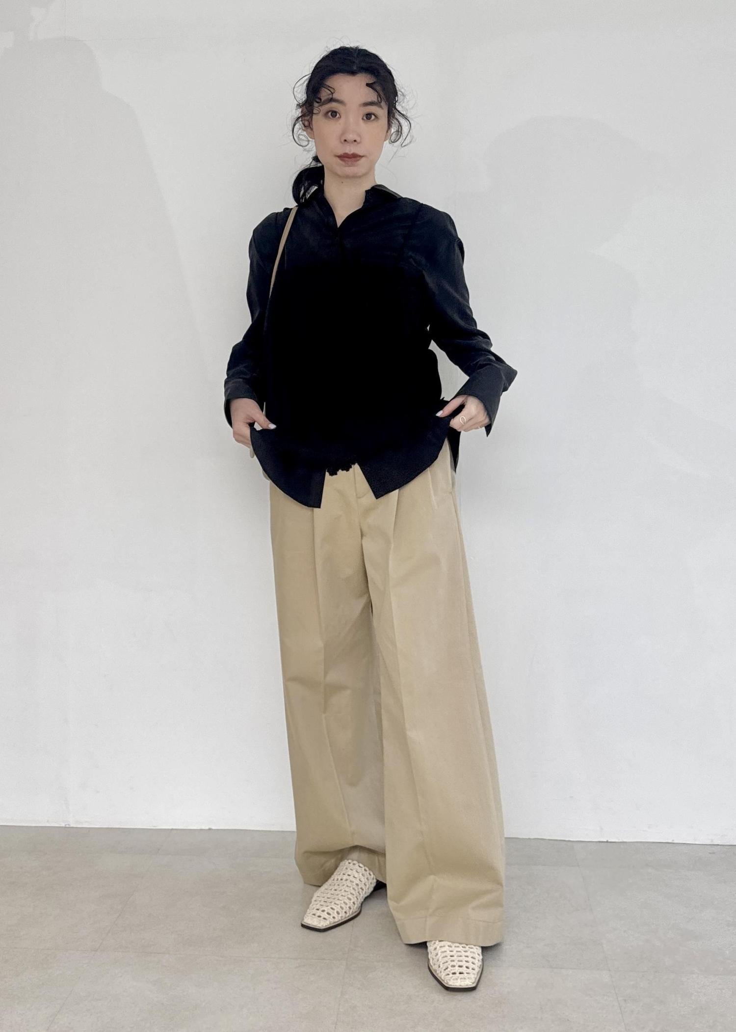 適度にゆとりのあるサイズ感、落ち感があるので小柄な方でも身体が大きく見えずバランスとりやすいです。