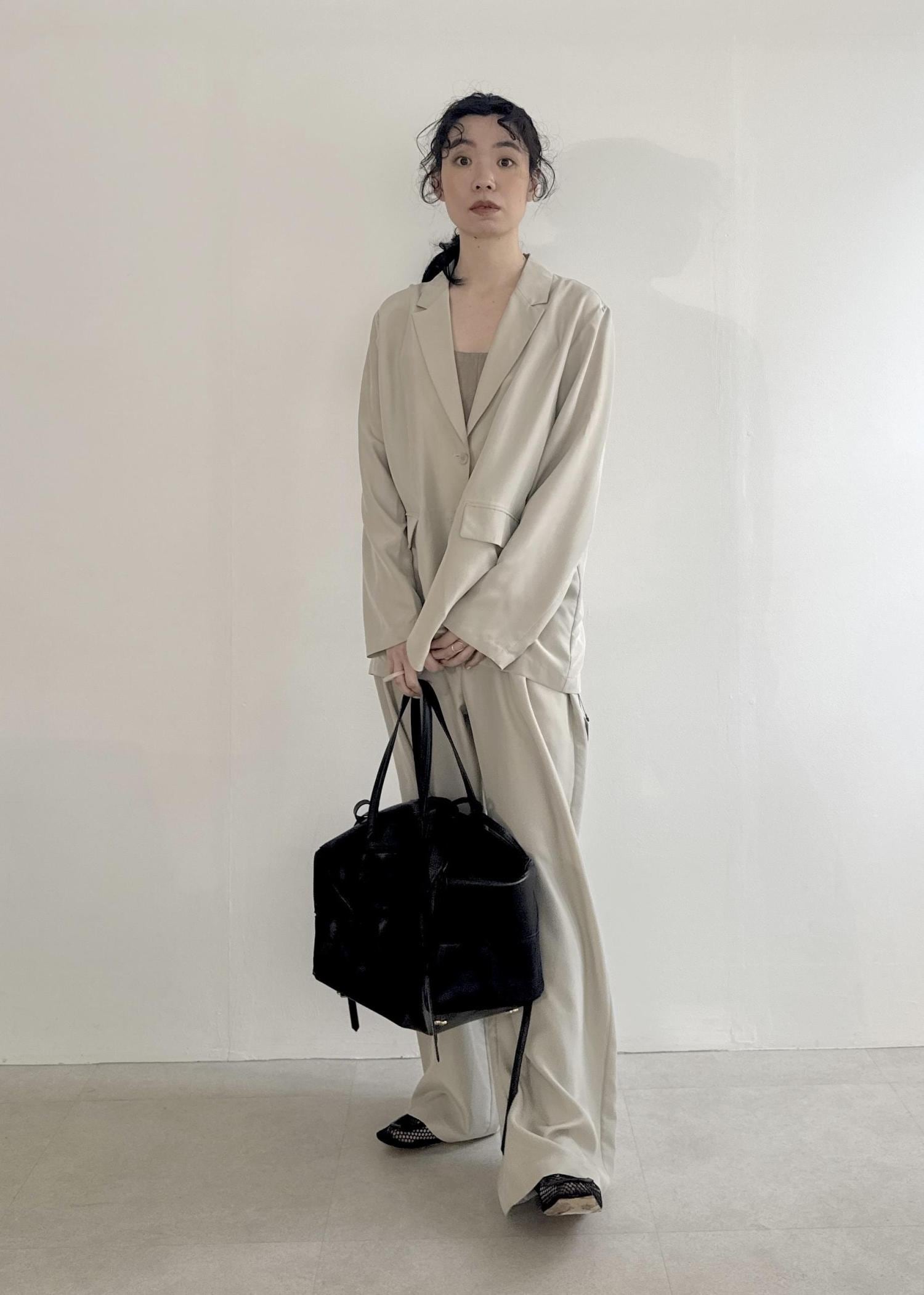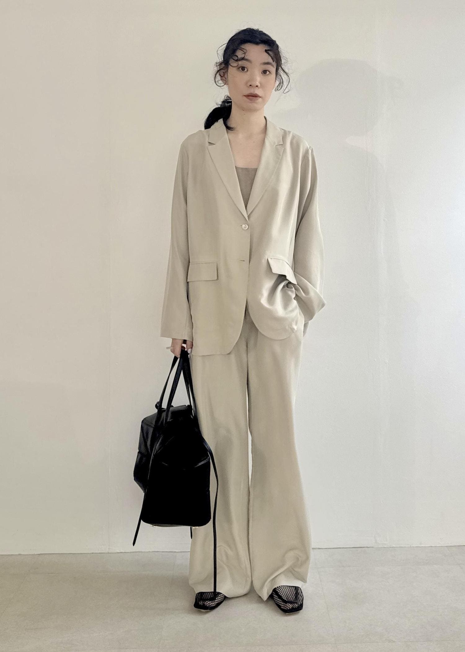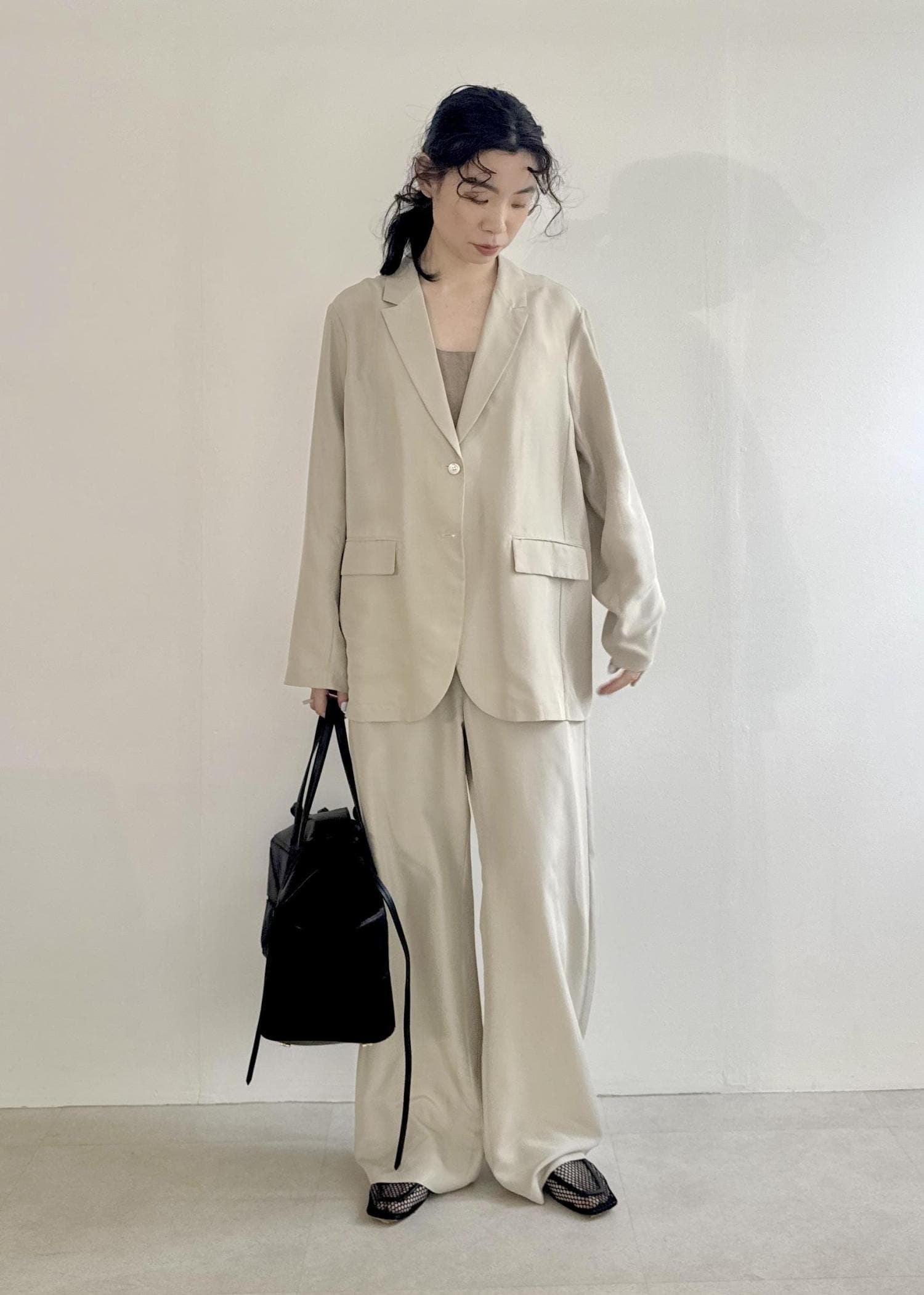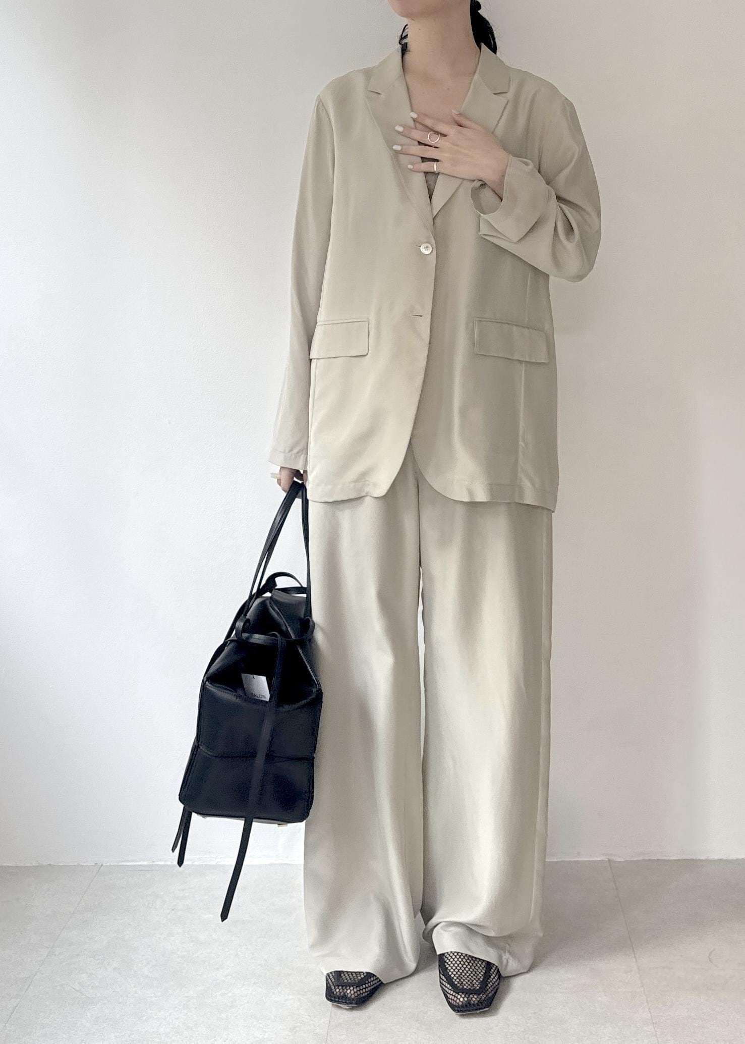 予約SALON adam et ropé[26SS]GENTLE SILK パンツ / セットアップ対応・洗えるベージュ系 / M¥31,900レビューゆったりとしたシルエットですがシルクならではの落ち感がありリラックス過ぎない上品な印象。