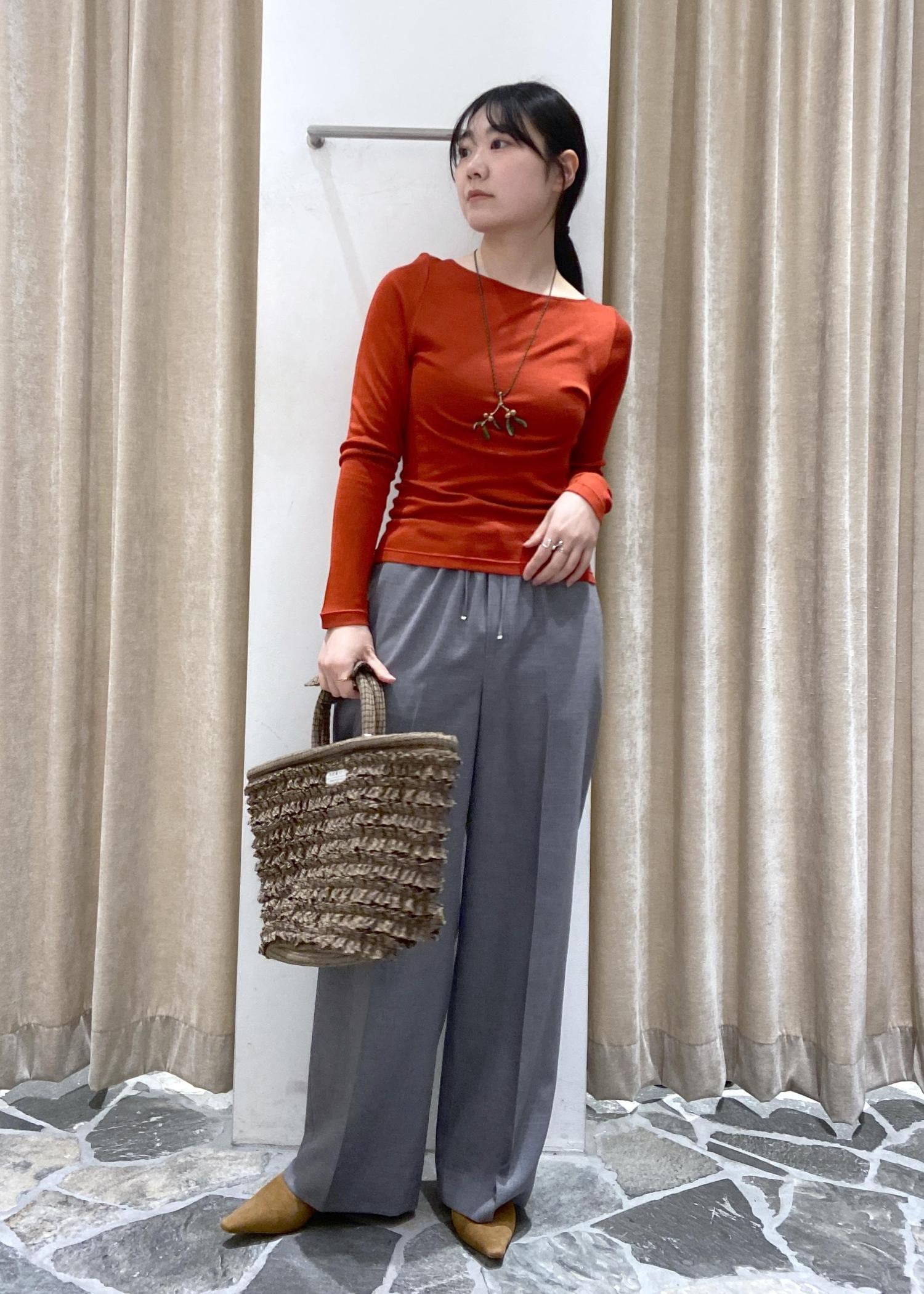 シルクならではのしっとりやわらかな素材感です。光沢感もあり、一枚でも様になりますがレイヤードスタイルにも◎ -