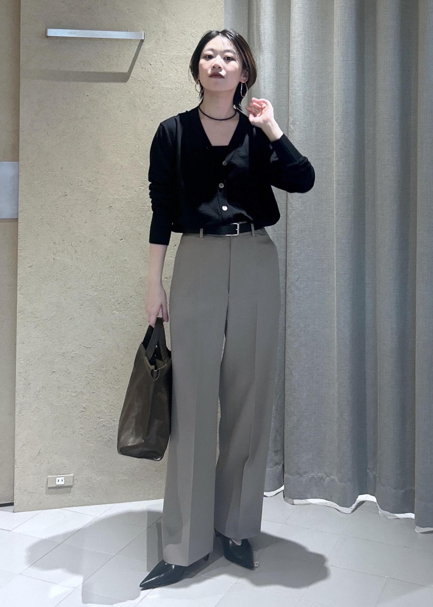 他をブラックでまとめていても、ボトムが明るいだけで軽やかに見えるマジックです♪