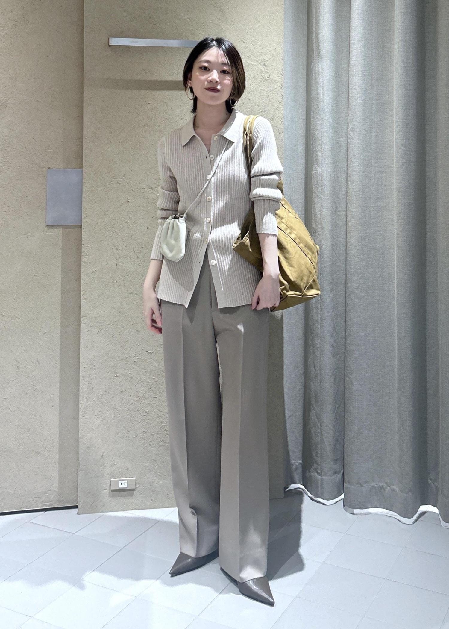SALON adam et ropéコットンシルクカシミアリブポロカーディガンベージュ / F¥19,800レビュー【サイズ感】