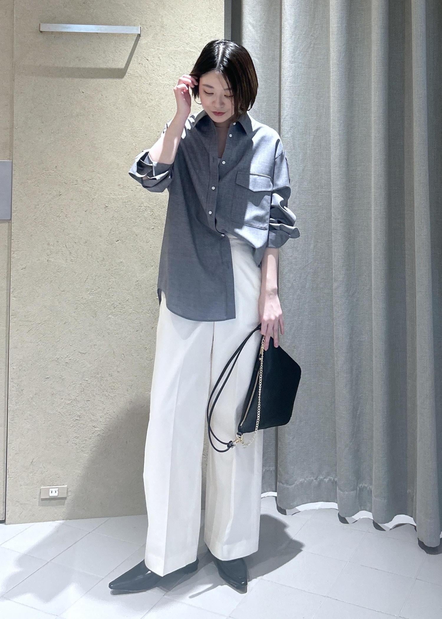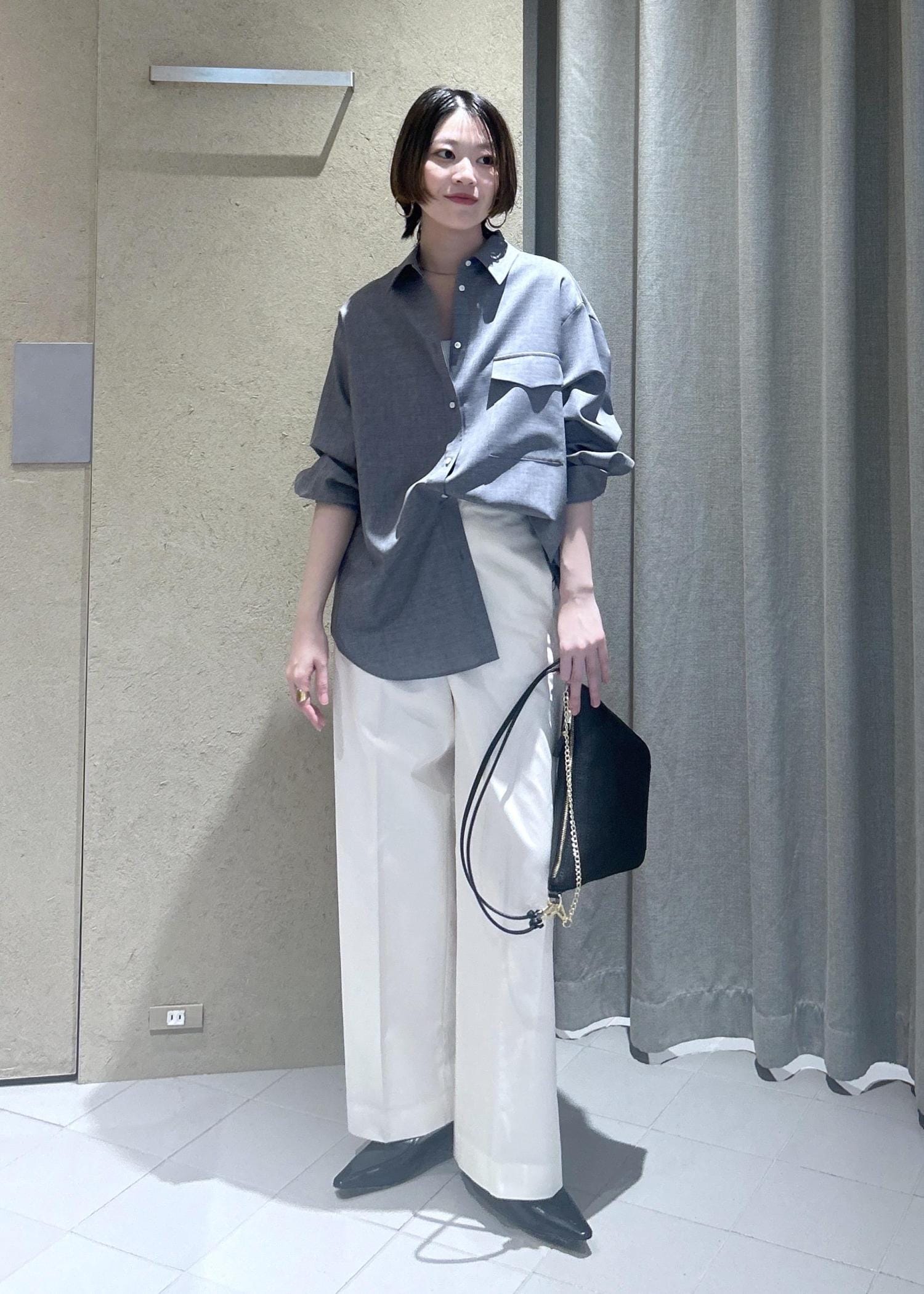 程よいハリがありつつ、身体に沿ってストンと落ちてくれるのでオーバーサイズながらも華奢感が出ます。