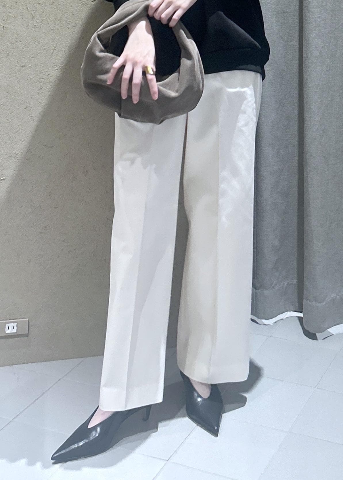 ワイドすぎず細すぎず、絶妙な太さで、カジュアルにも綺麗めにも着用できる万能なサイズ感。
