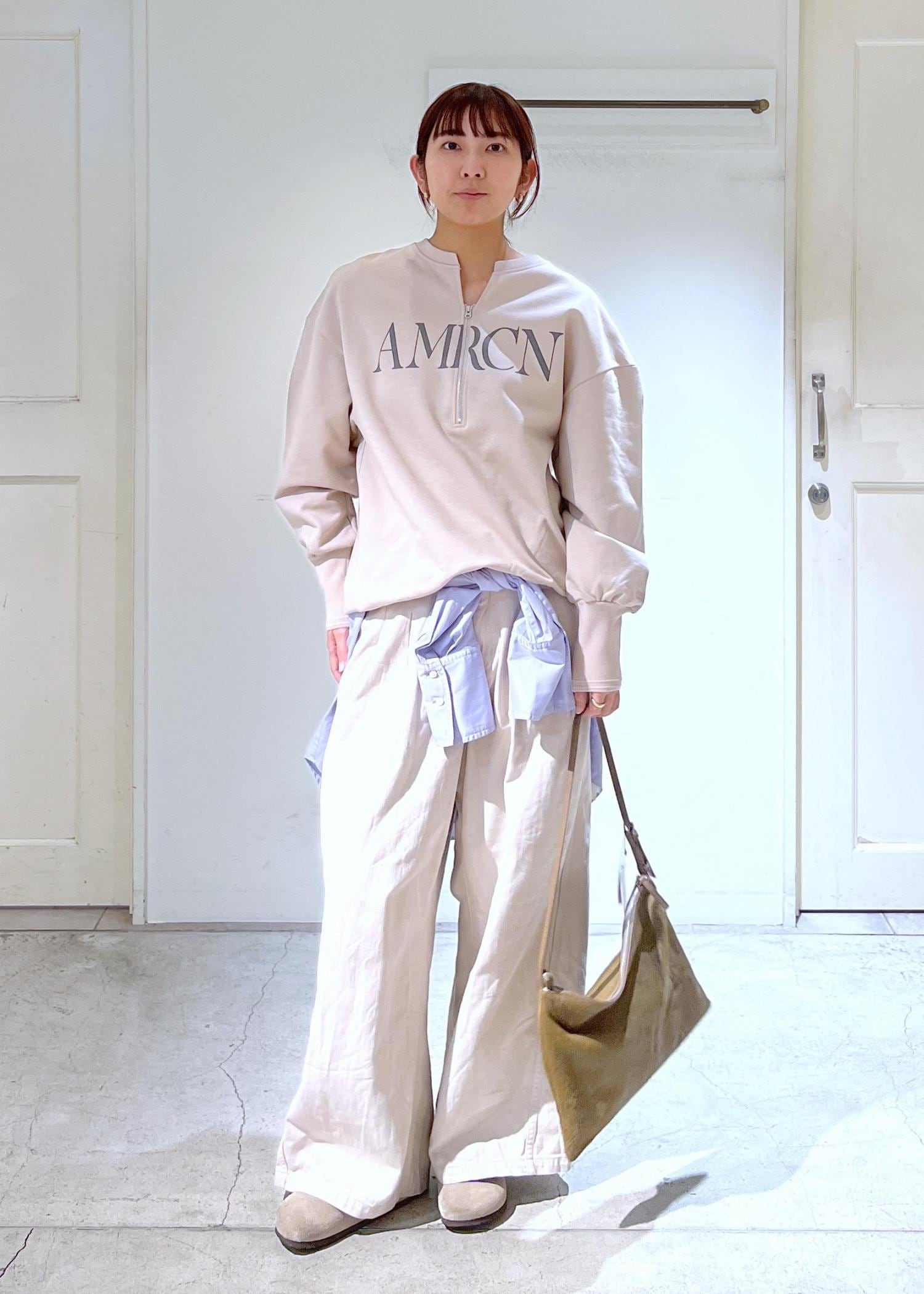 SALON adam et ropé【Americana(アメリカーナ) for SALON】ロゴジップスウェットベージュ系 / F¥23,100レビュー身幅はゆったり。後ろにかけてやや長くなっており、ヒップあたりまで丈があります。程よく厚手ですが着やすいサイズ感です。