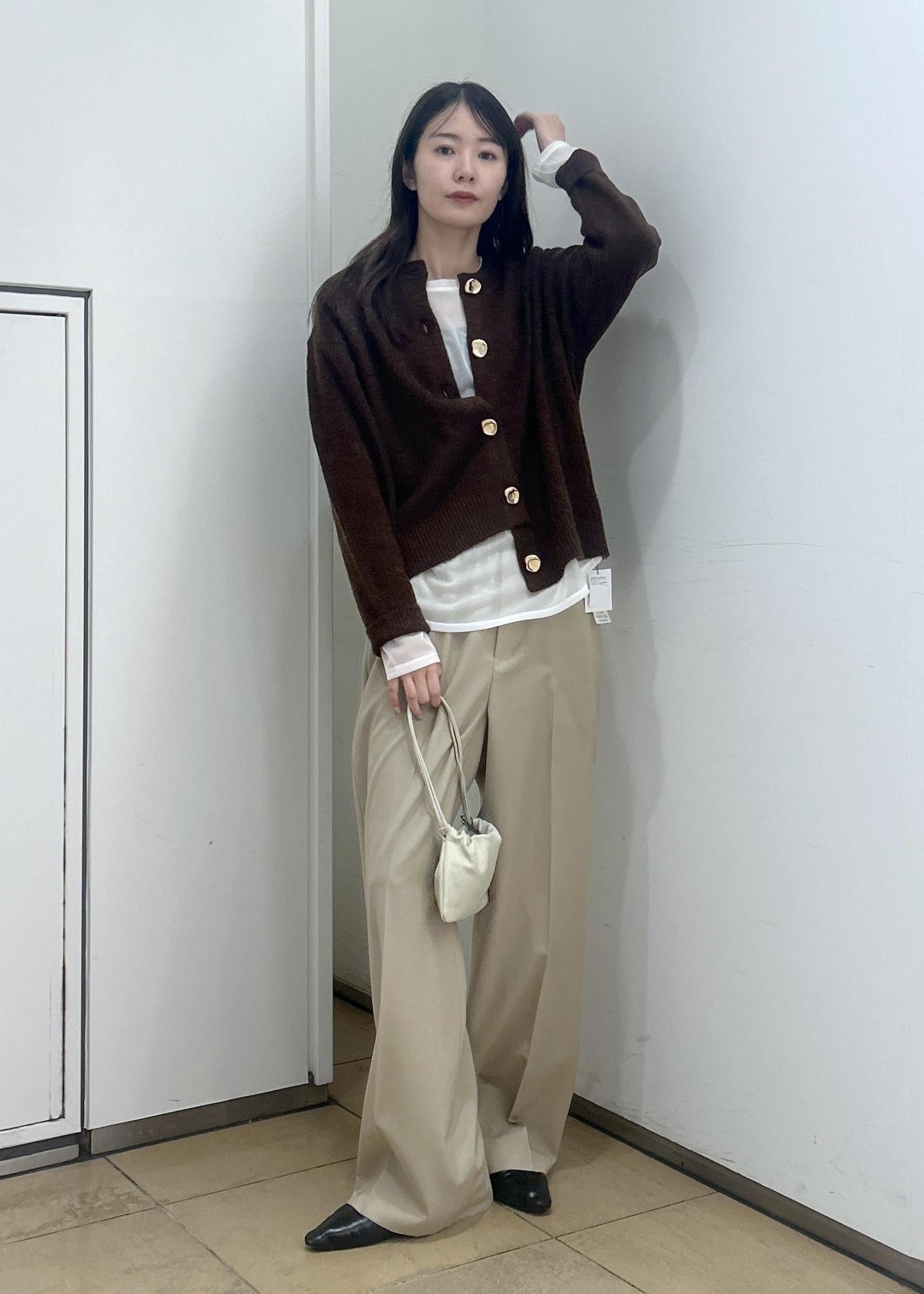 2BUY10%OFFSALON adam et ropé【WEB限定】2WAYニュアンスメタルボタンシャギークルーカーディガン 2 / 新色追加ダークブラウン / F¥9,240レビュー【サイズ感】