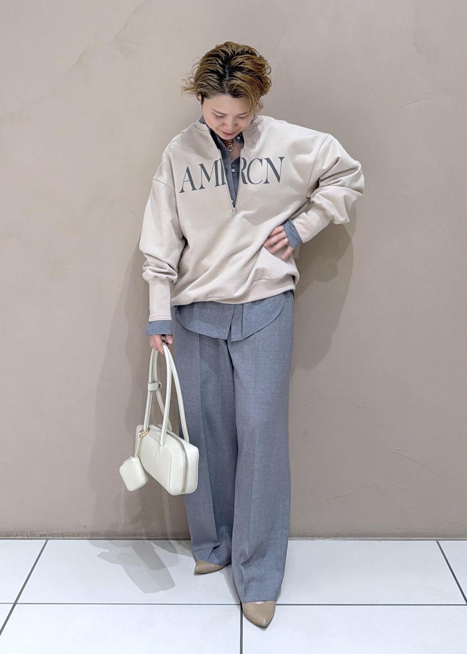 SALON adam et ropé【Americana(アメリカーナ) for SALON】ロゴジップスウェットベージュ系 / F¥23,100レビュー程よく薄手で秋〜春まで長いシーズン着られる素材感。少しハリ感があり立体的なシルエット。サラッと着るだけで小慣れた印象になるデザインです。