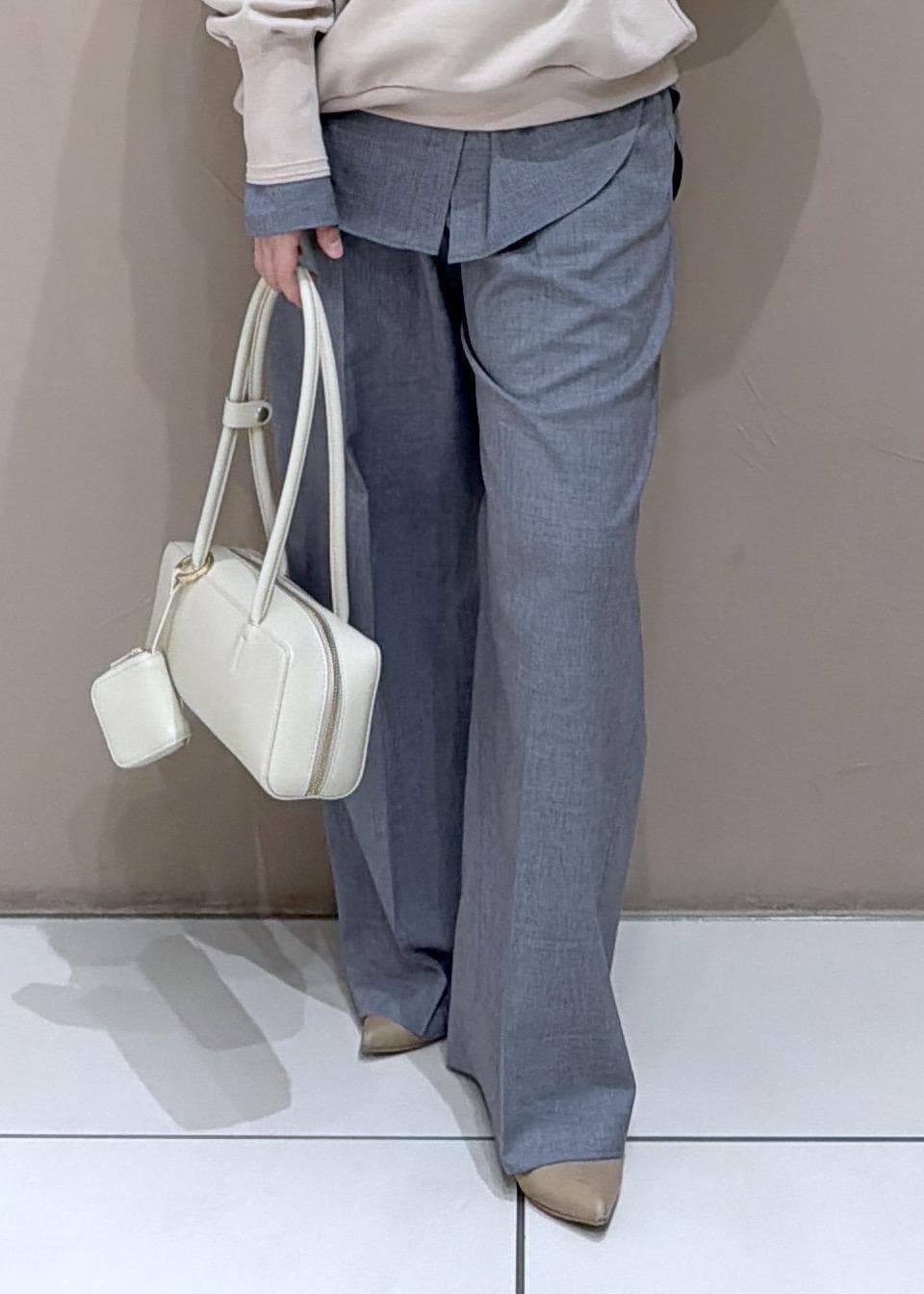 今回はシックなシャツとスラックスのセットアップにレイヤードして、大人カジュアルスタイルにしてみました♡
