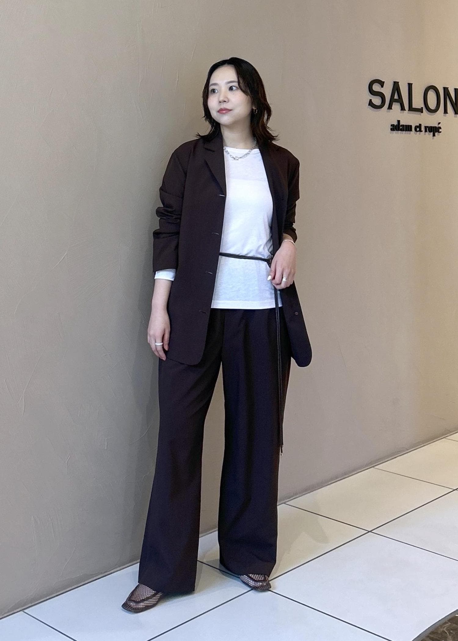 普段ボトムスはMサイズを着ることが多いですが、こちらはSがジャストサイズ。撮影時はMサイズを着用していて、ウエストまわりは少しゆとりがあります。154cmで着丈もMサイズだとかなり長いのでヒールは必須。