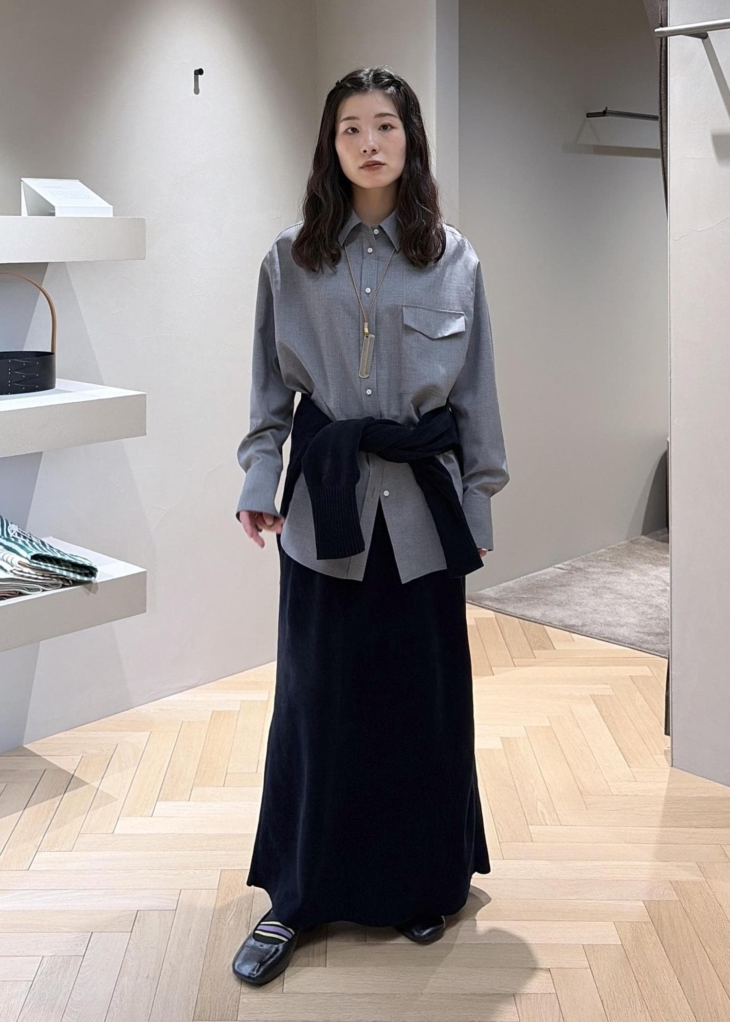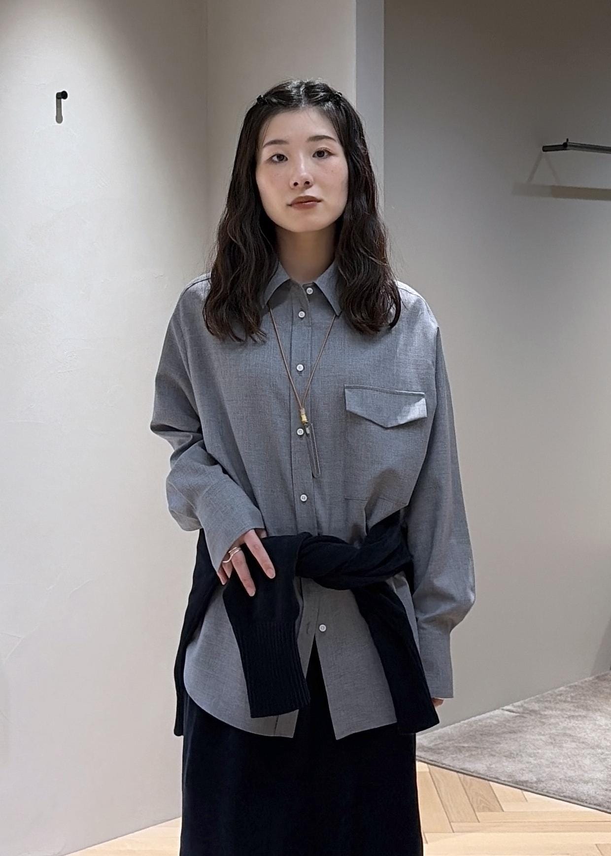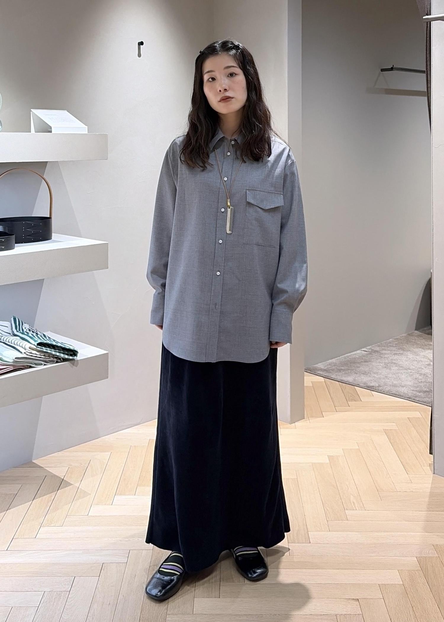 グレーのシャツと合わせてワントーンに、