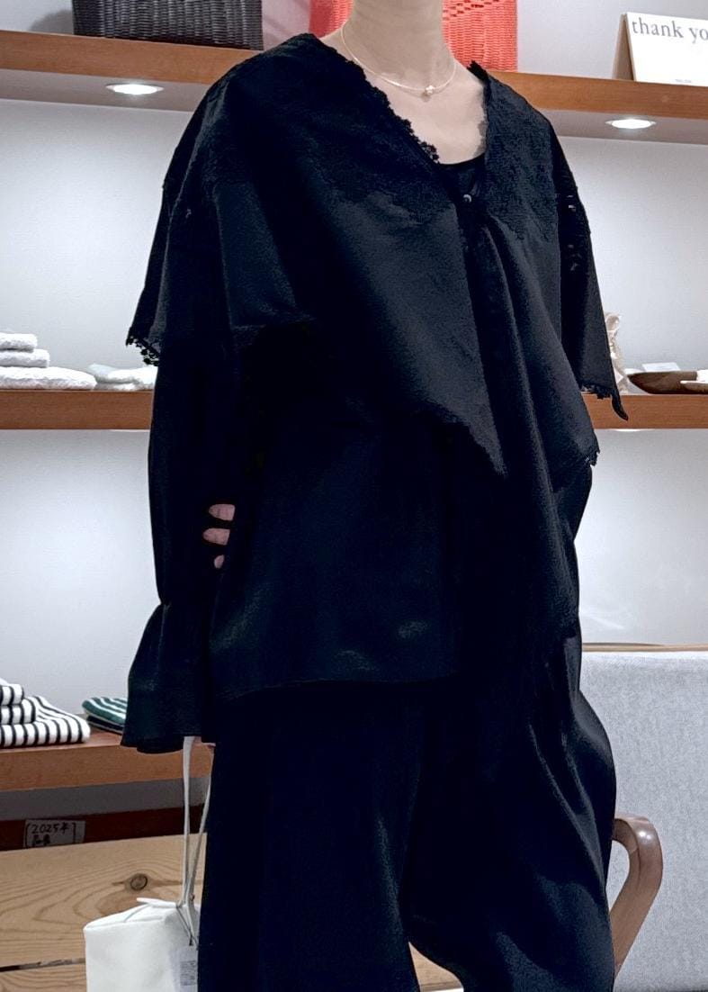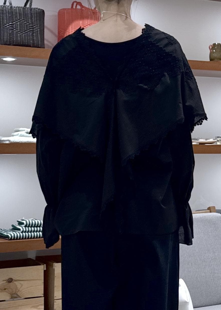 SALON adam et ropéクロスレースケープブラウスブラック / F¥39,600レビュー前後2wayで着用可能。