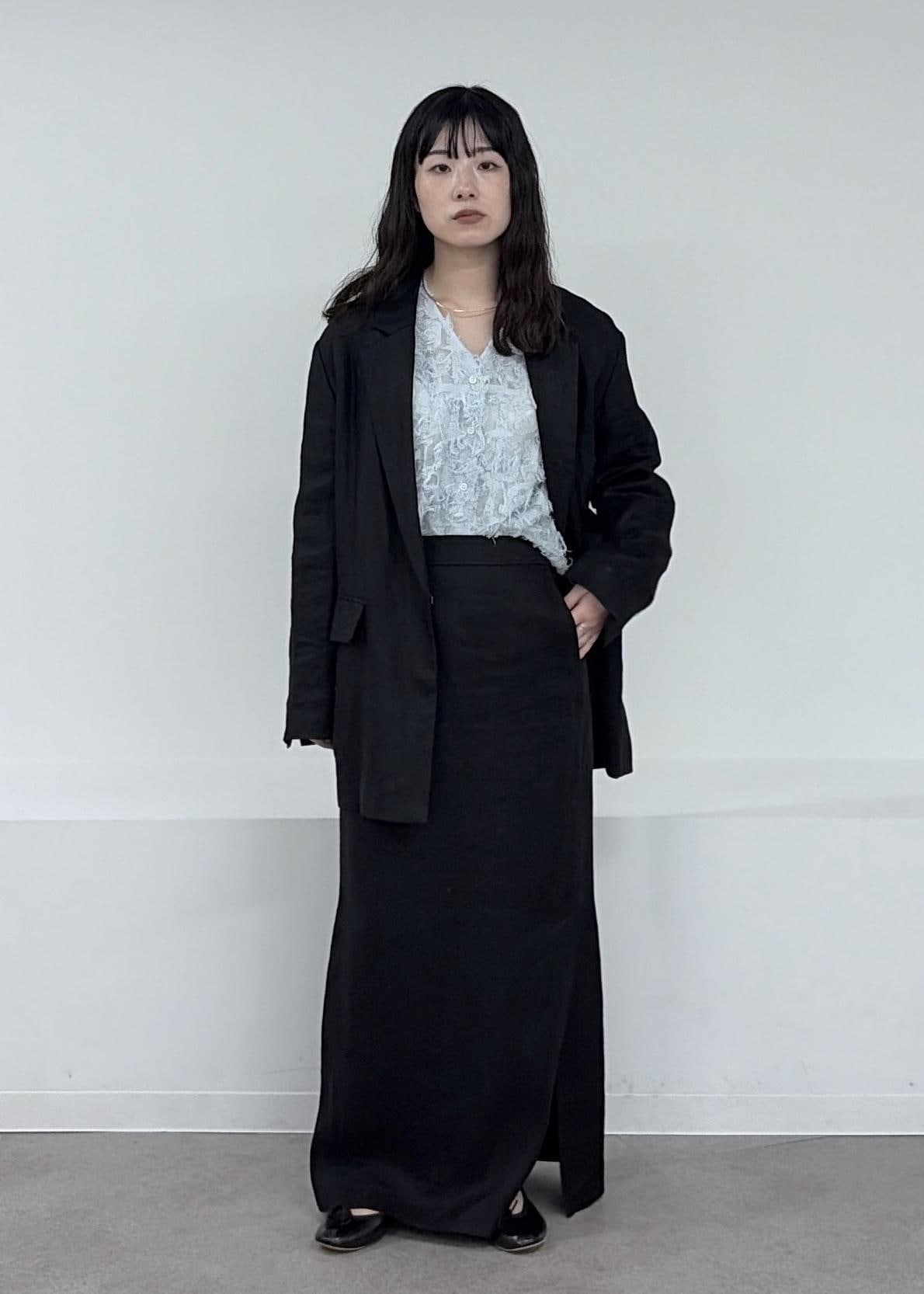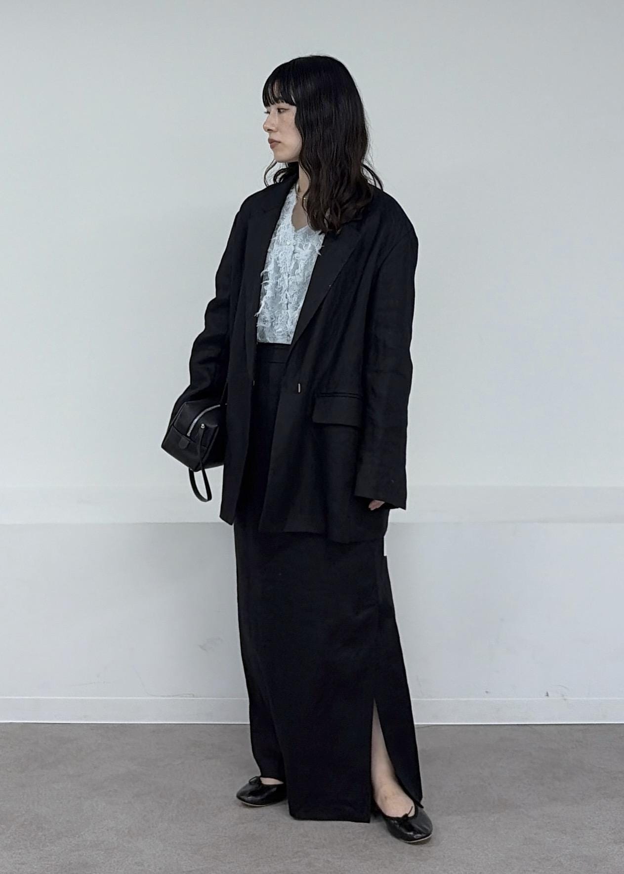 リネン使用、厚みのある生地感です。オーバーサイズですが、フォーマル/カジュアルどちらも合わせていただけます。 -