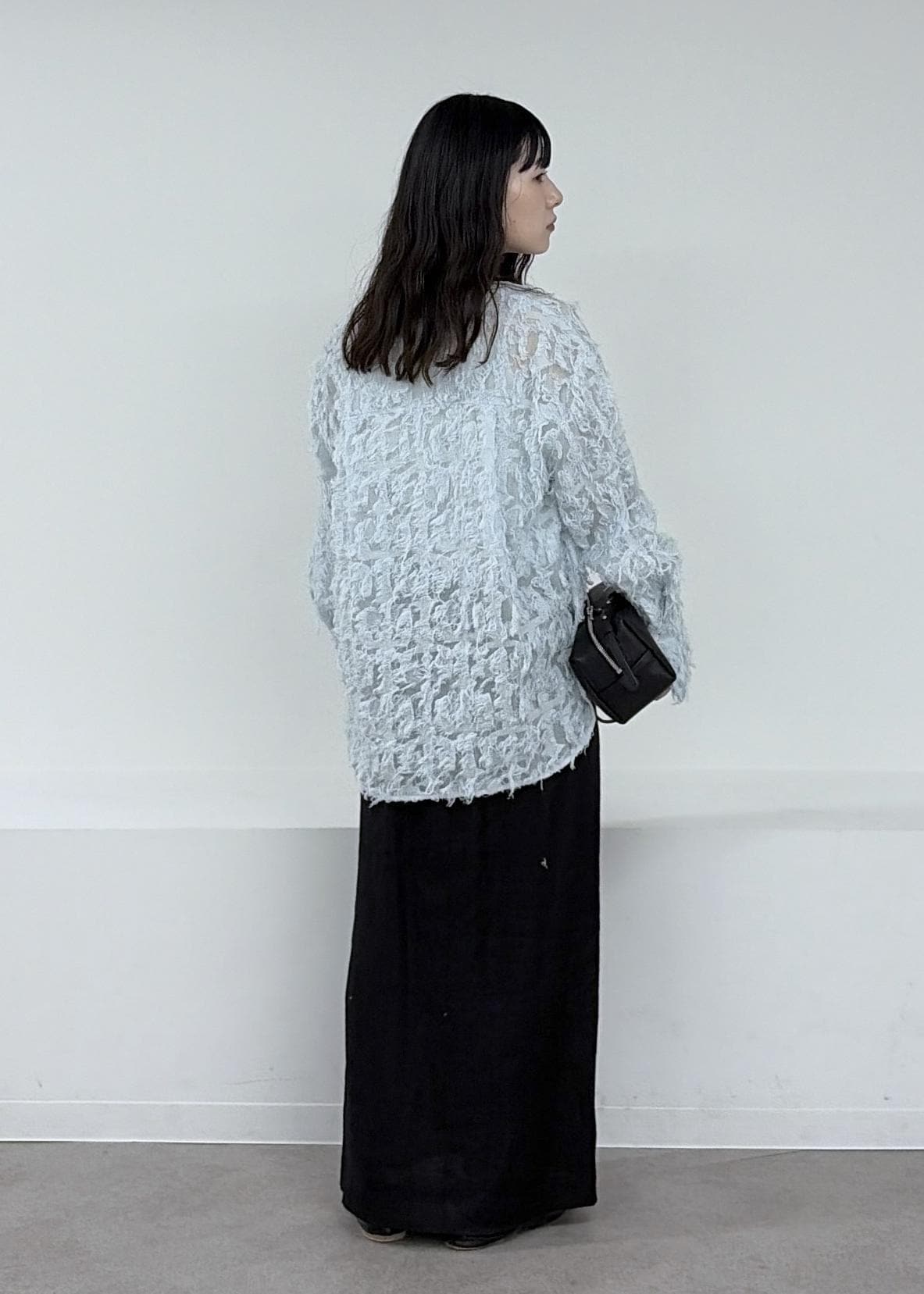 華やかなカットジャガード素材。首元はVネックですっきり見えします。羽織でもブラウスとしても◎ -