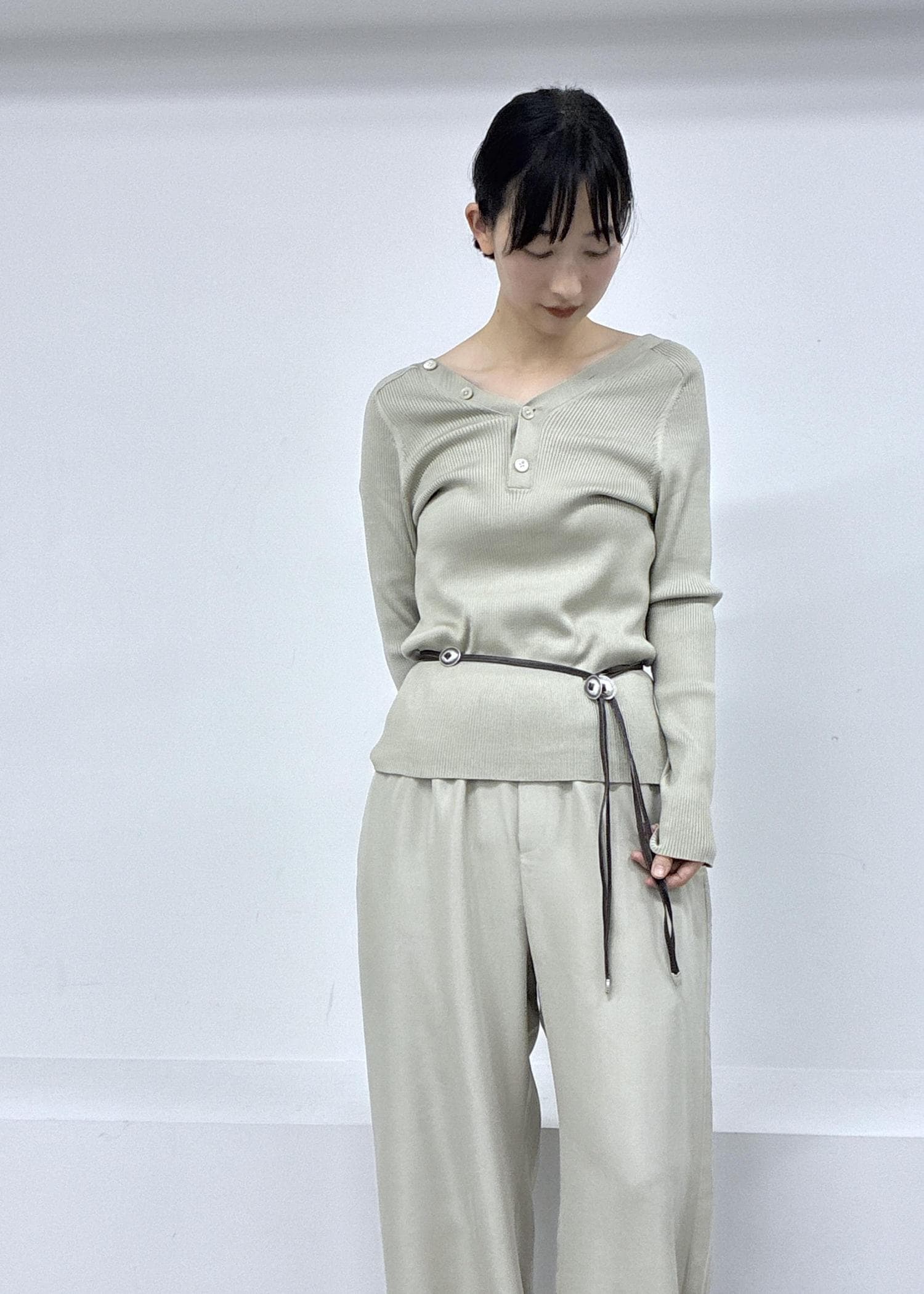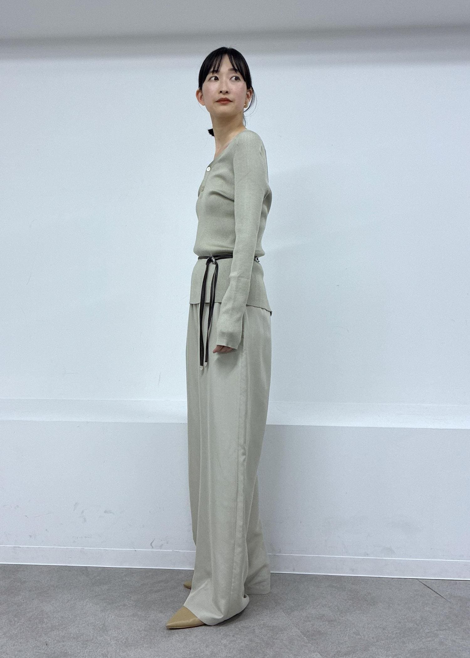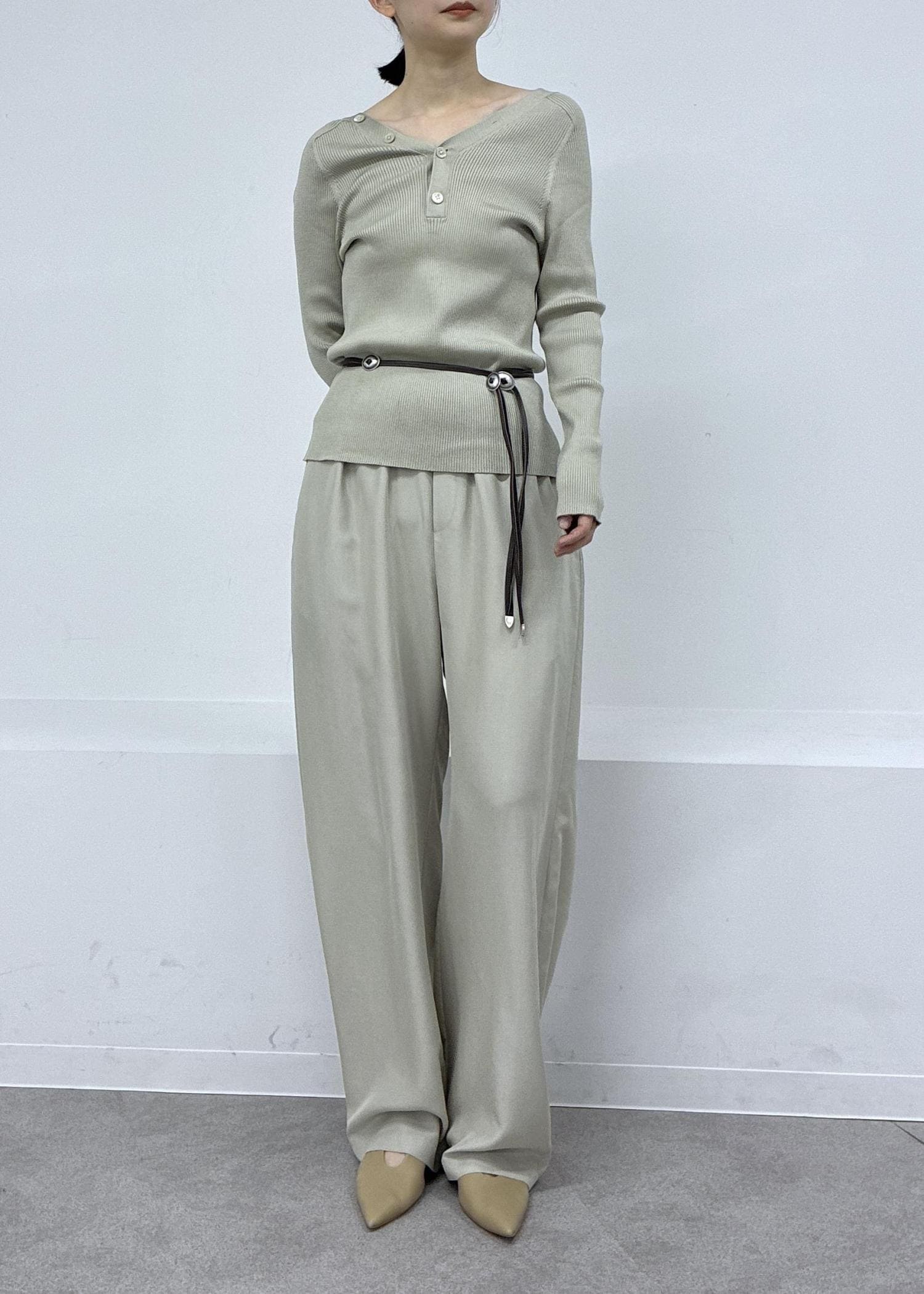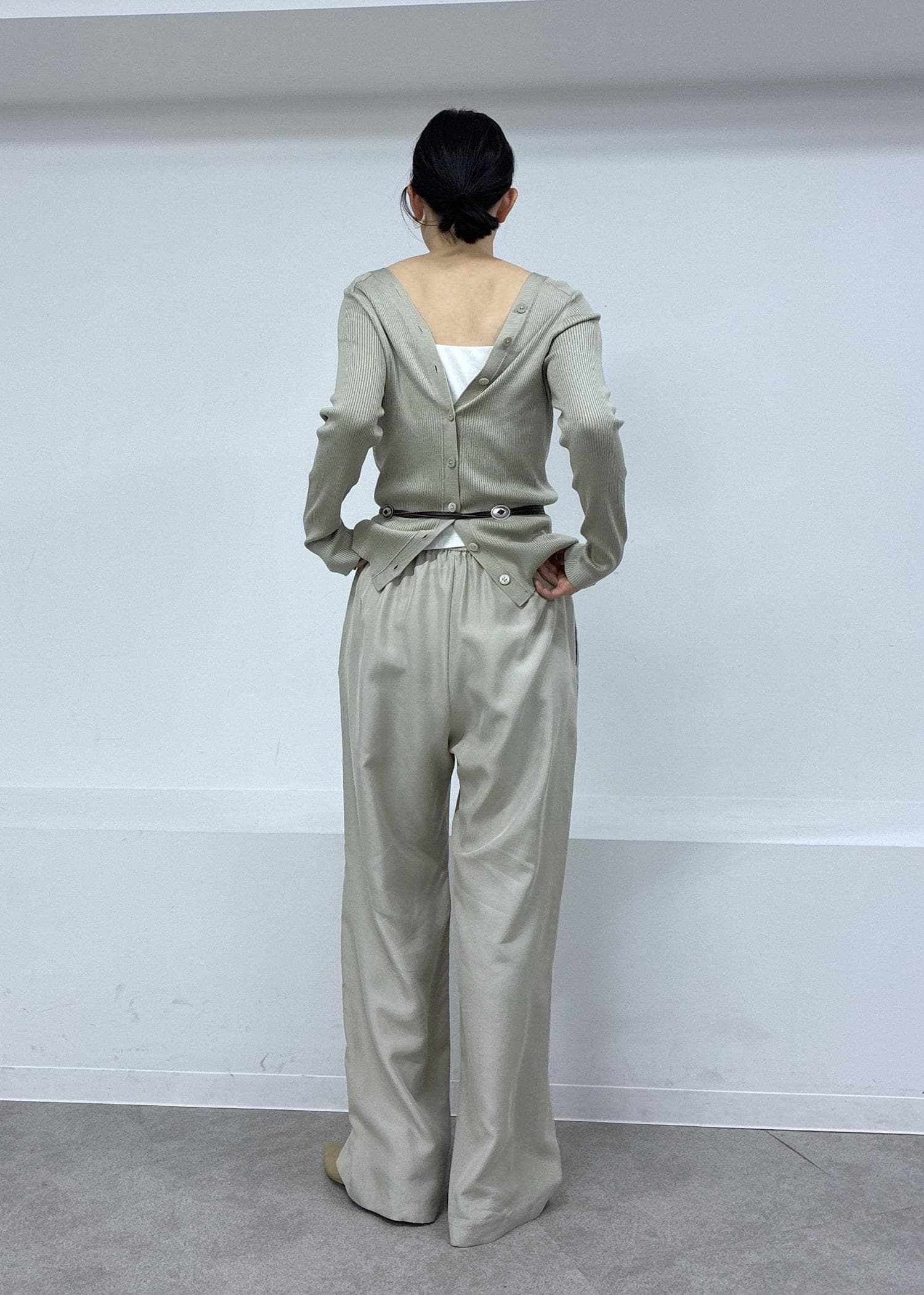 2wayリブカーディガンとgentle silkパンツ