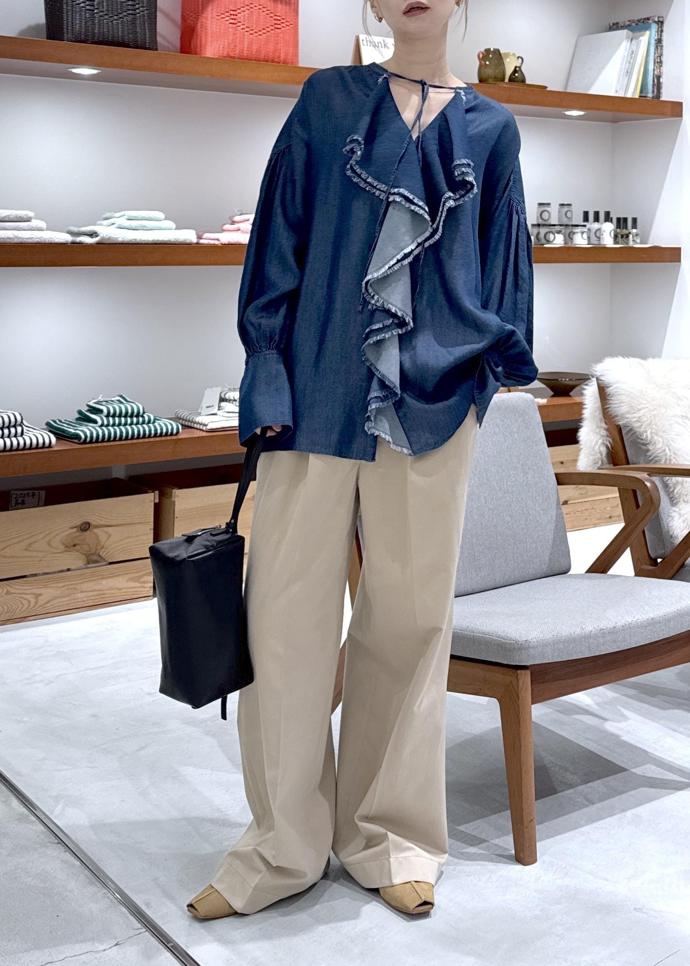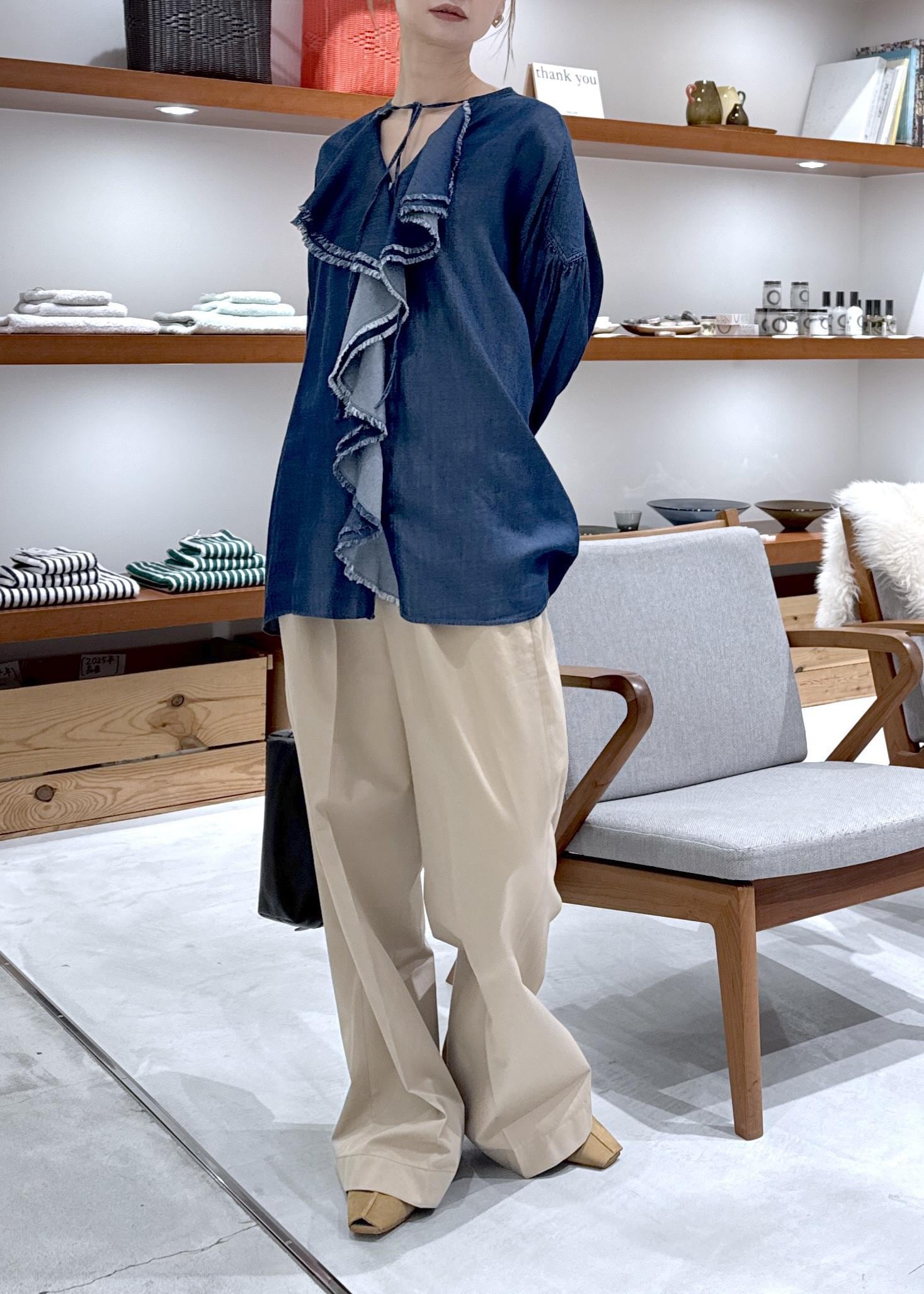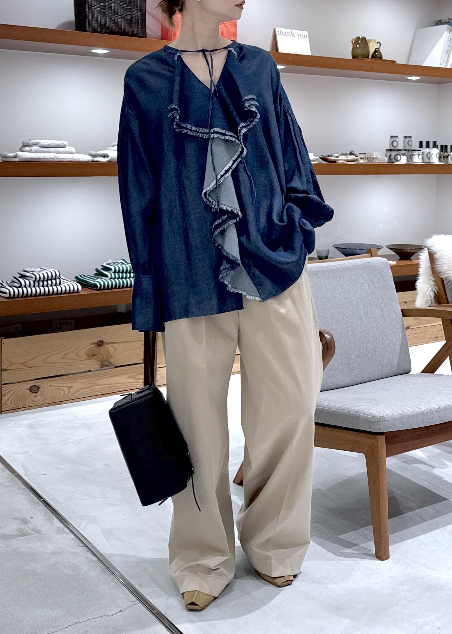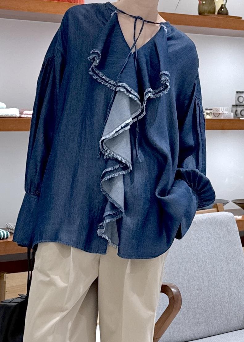 デニムライクラッフルフリルブラウス