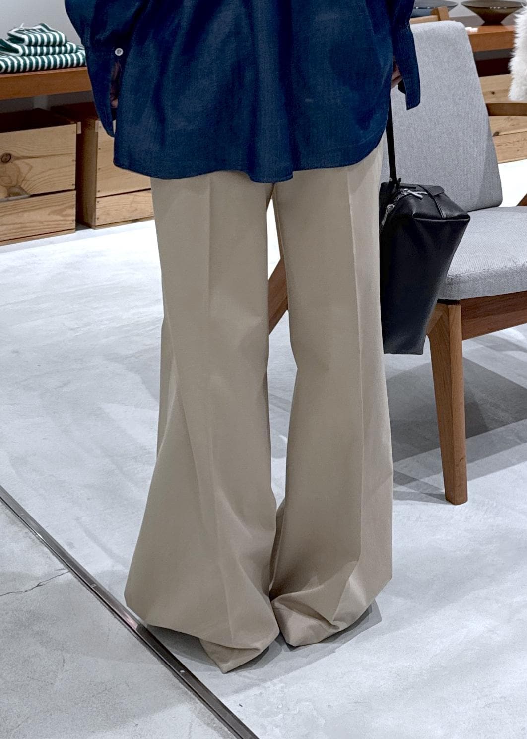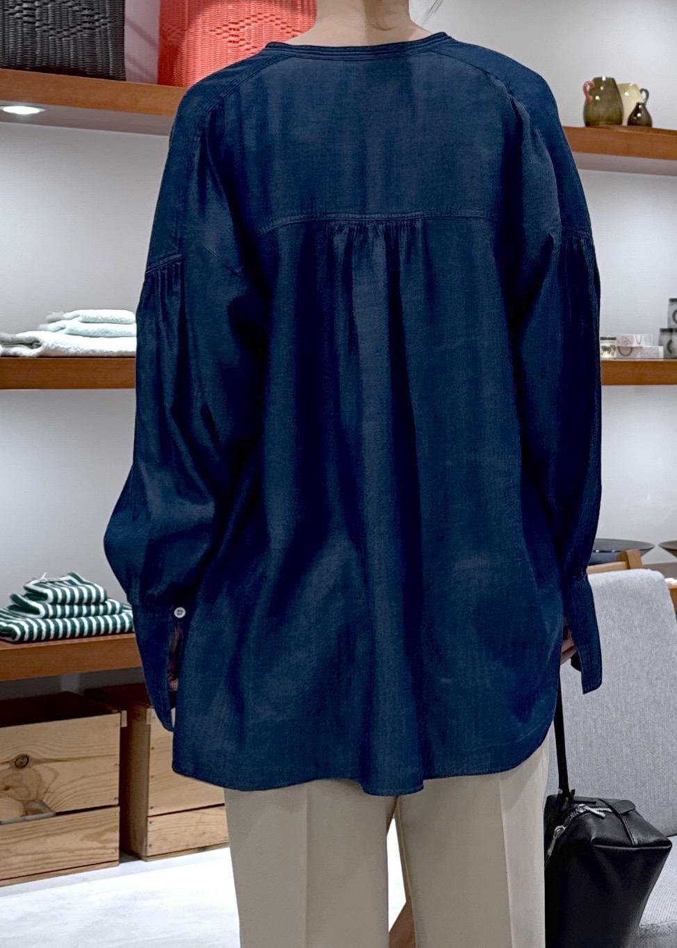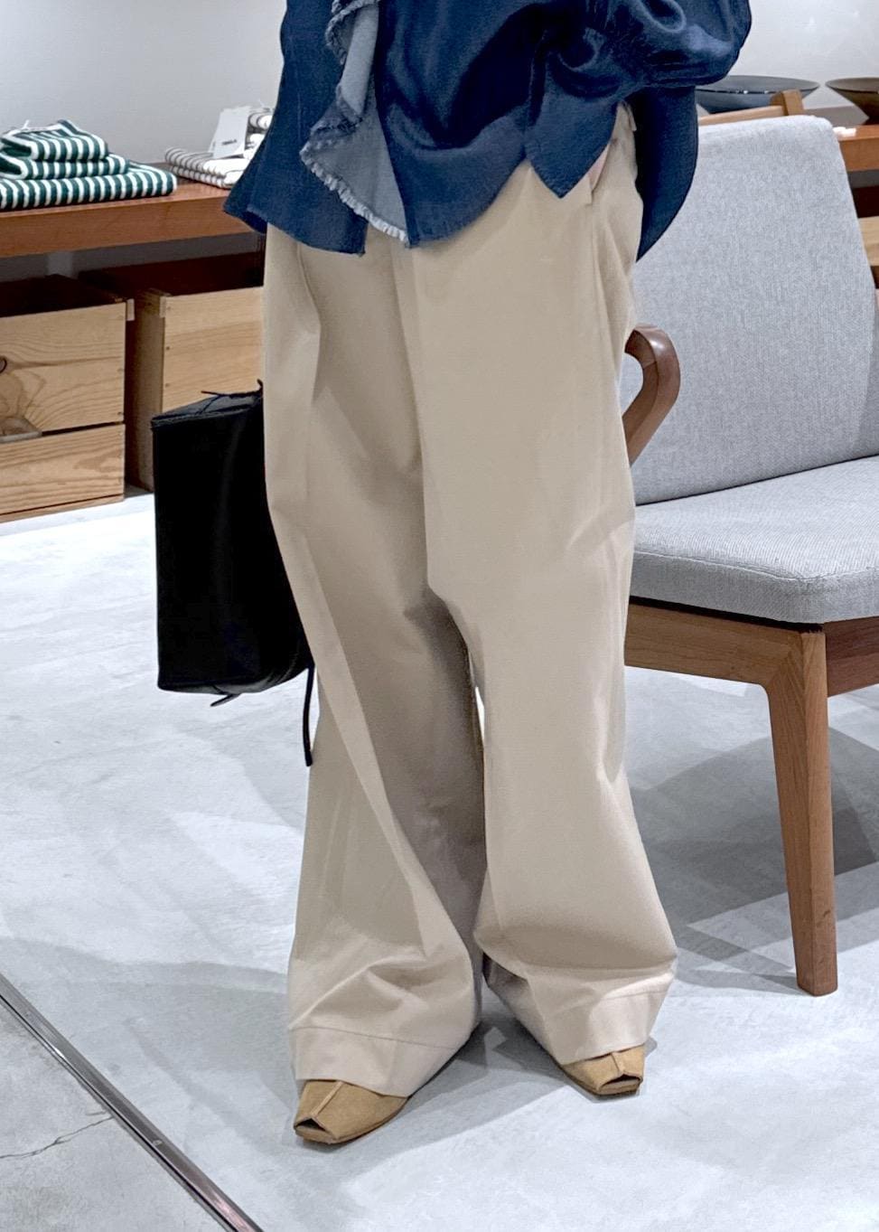 デニムライクな生地ですが、落ち感もある柔らかな素材で、
