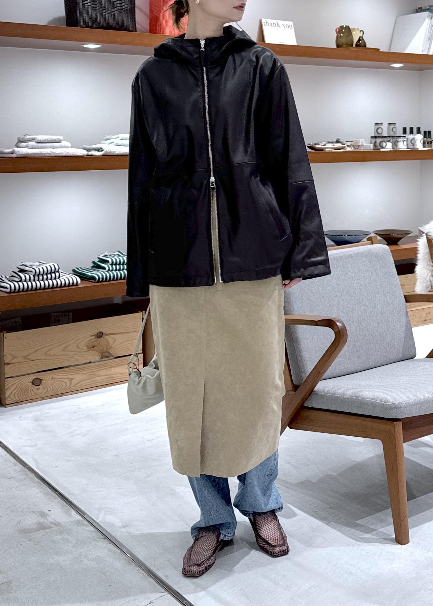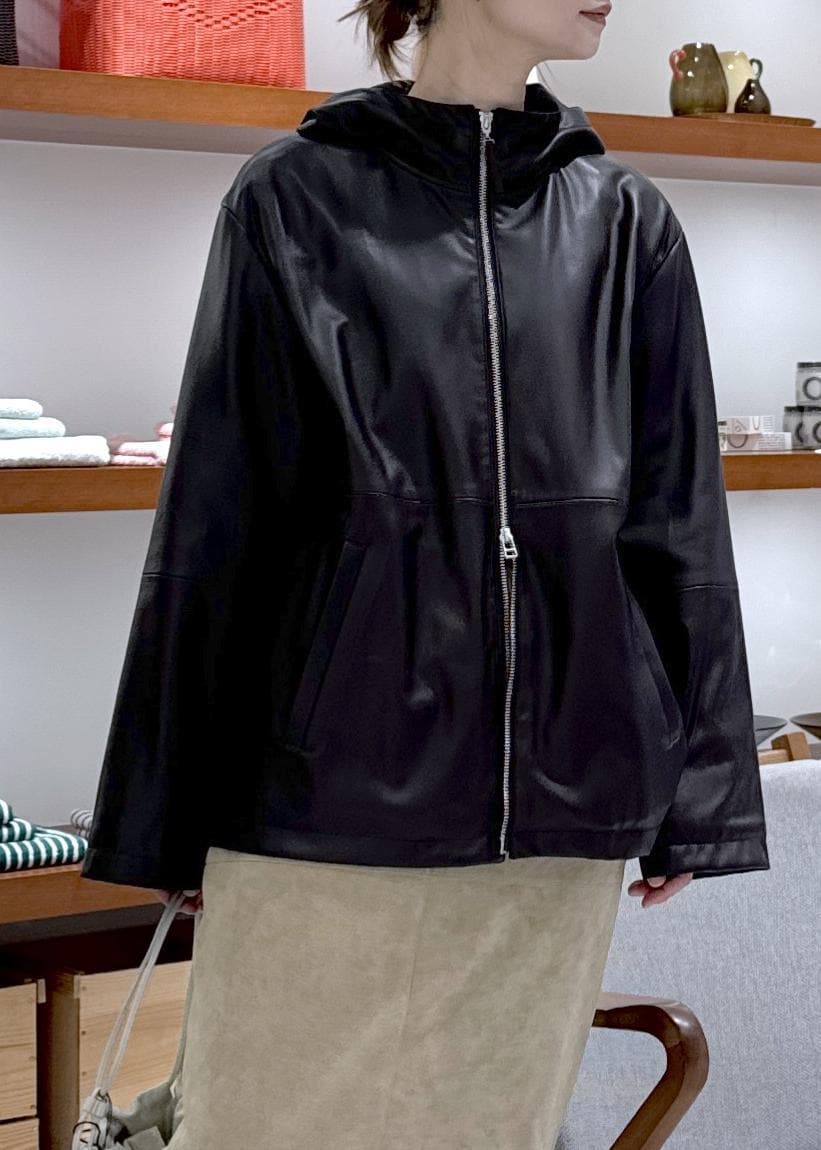 SALON adam et ropéレザーライクフーデッドパーカーダークブラウン / F¥35,200レビュー軽さと柔らかさを兼ね備えたライトアウターです。