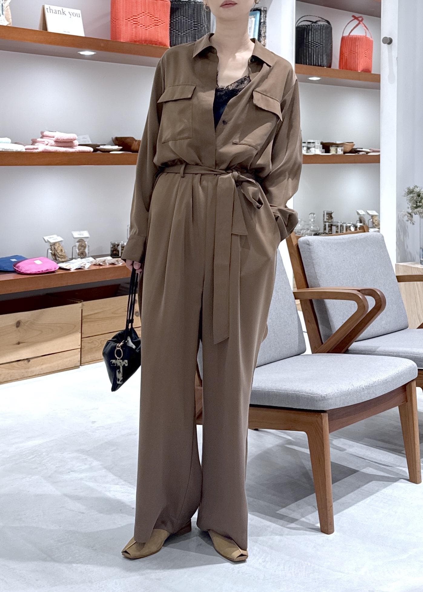 サイズも着るとオーバーすぎずスッキリ着ていただけます。 -