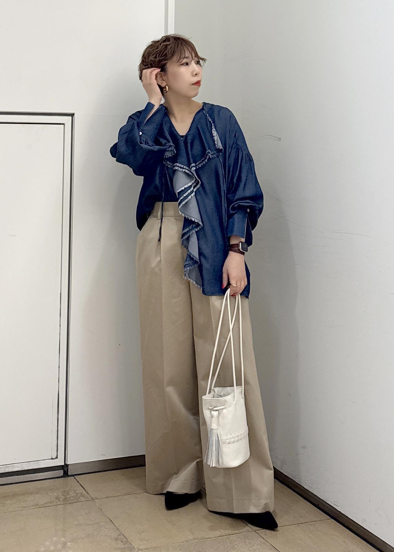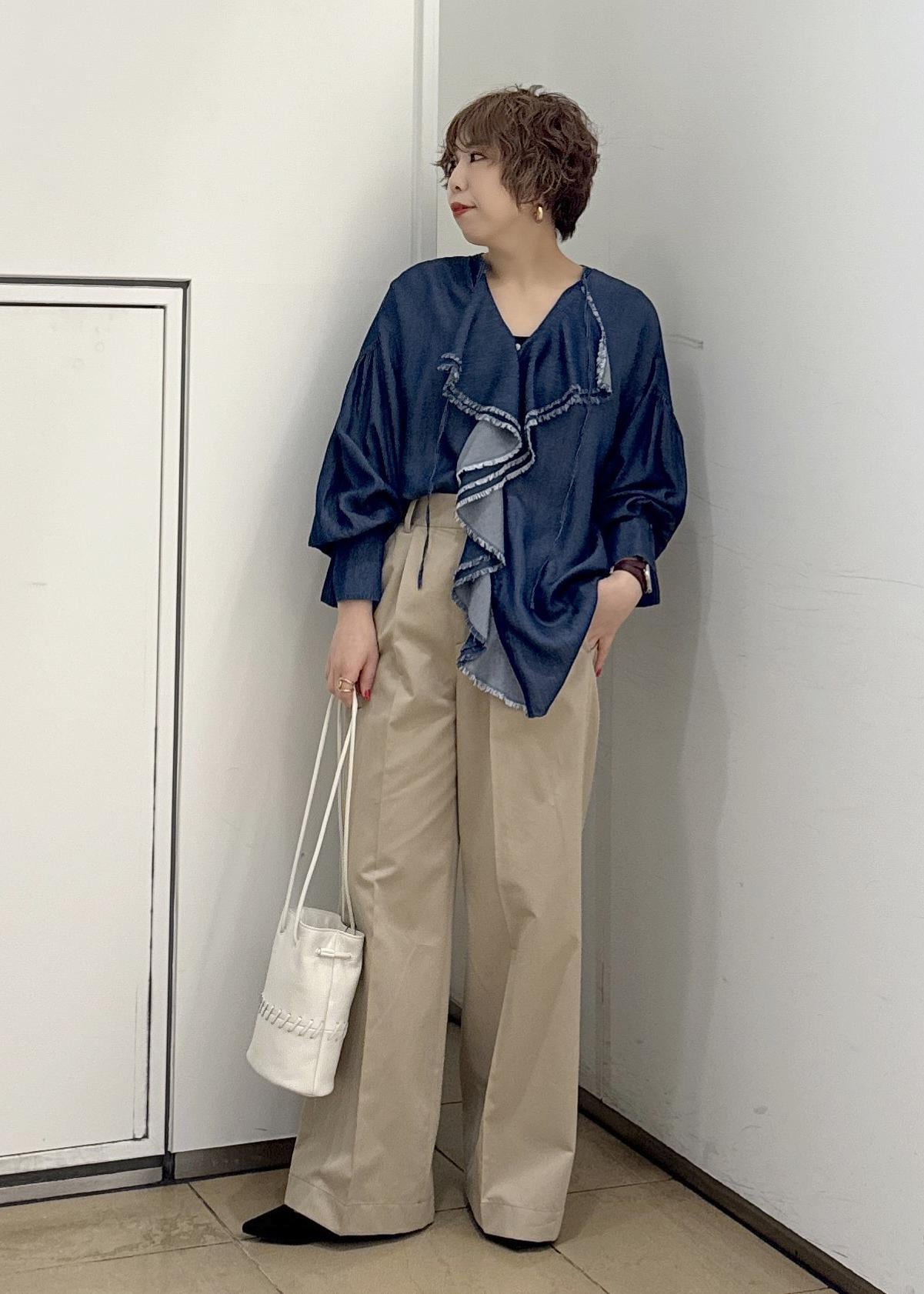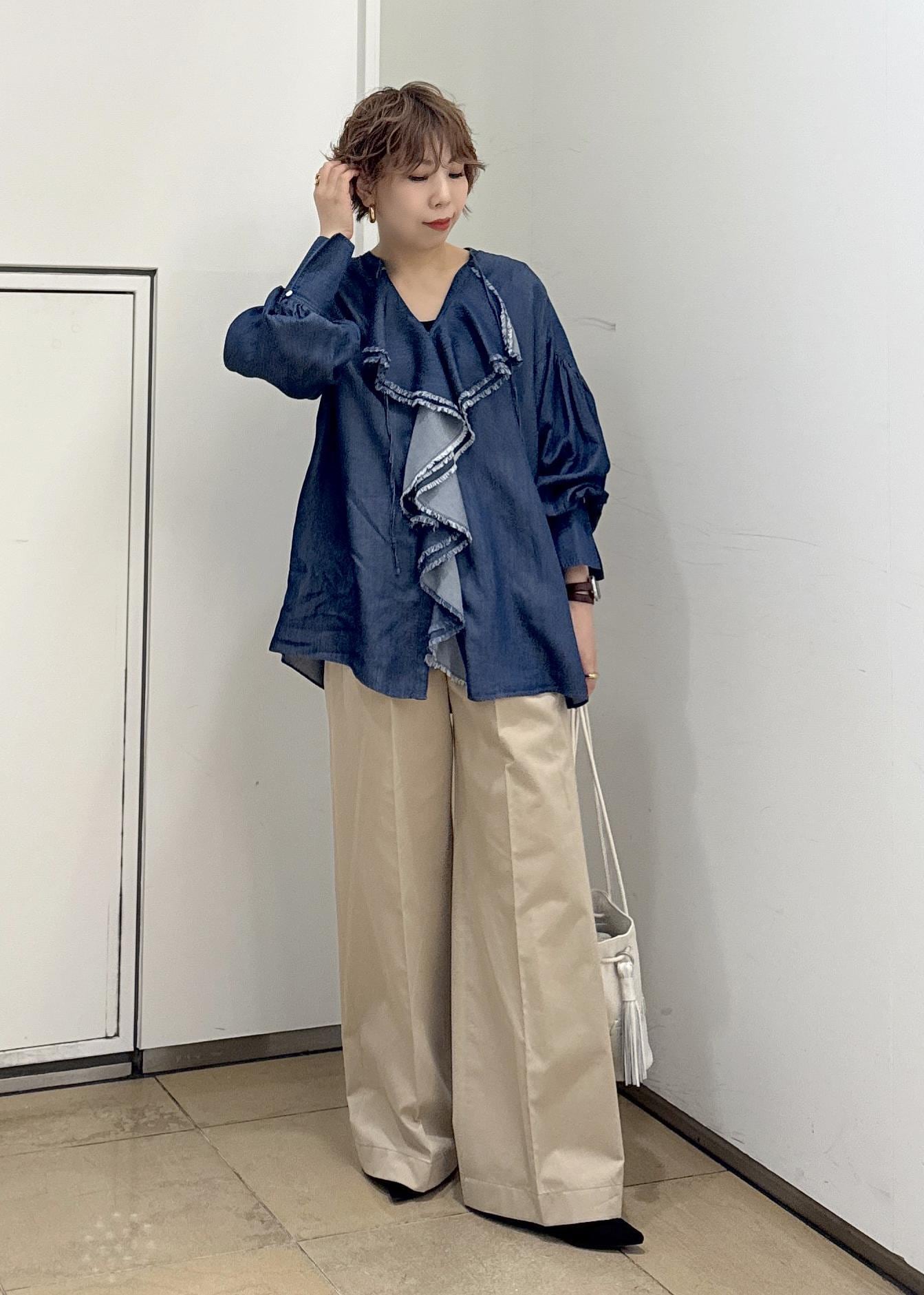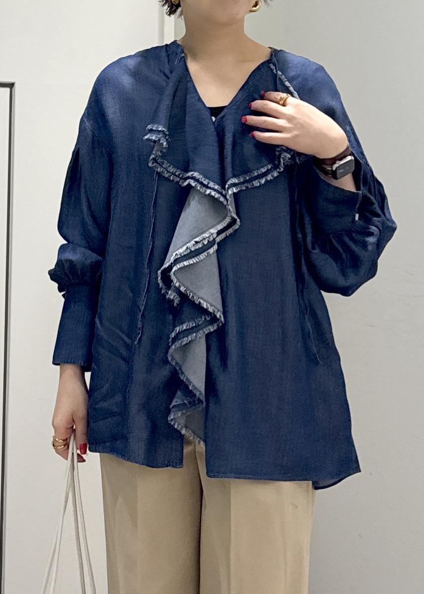 デニムライクで甘すぎない大人のフリルブラウス⭐︎