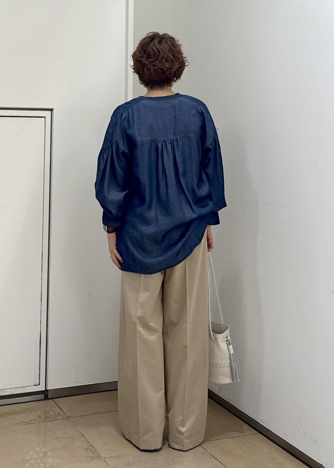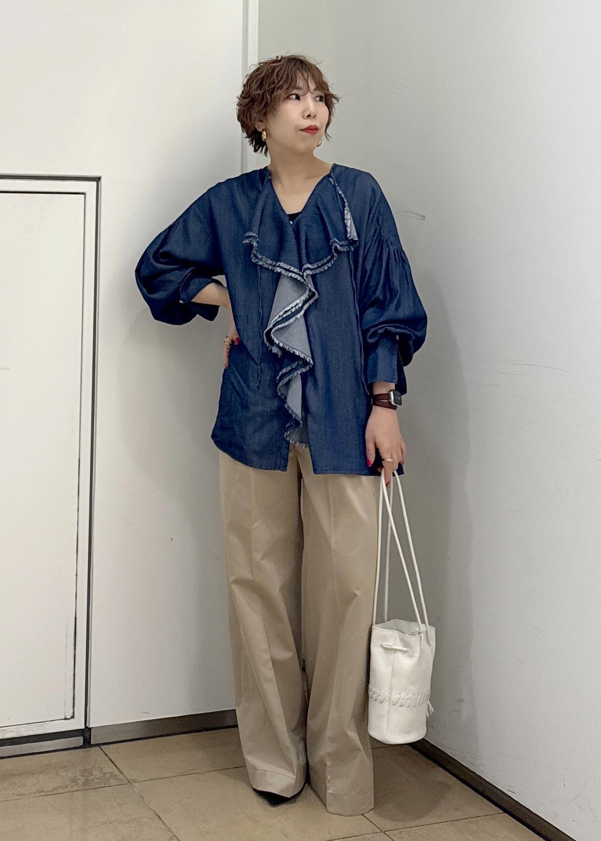 SALON adam et ropéデニムライクラッフルフリルブラウスブルー系 / F¥23,100レビューサイズ感は全体的ゆったりめ。