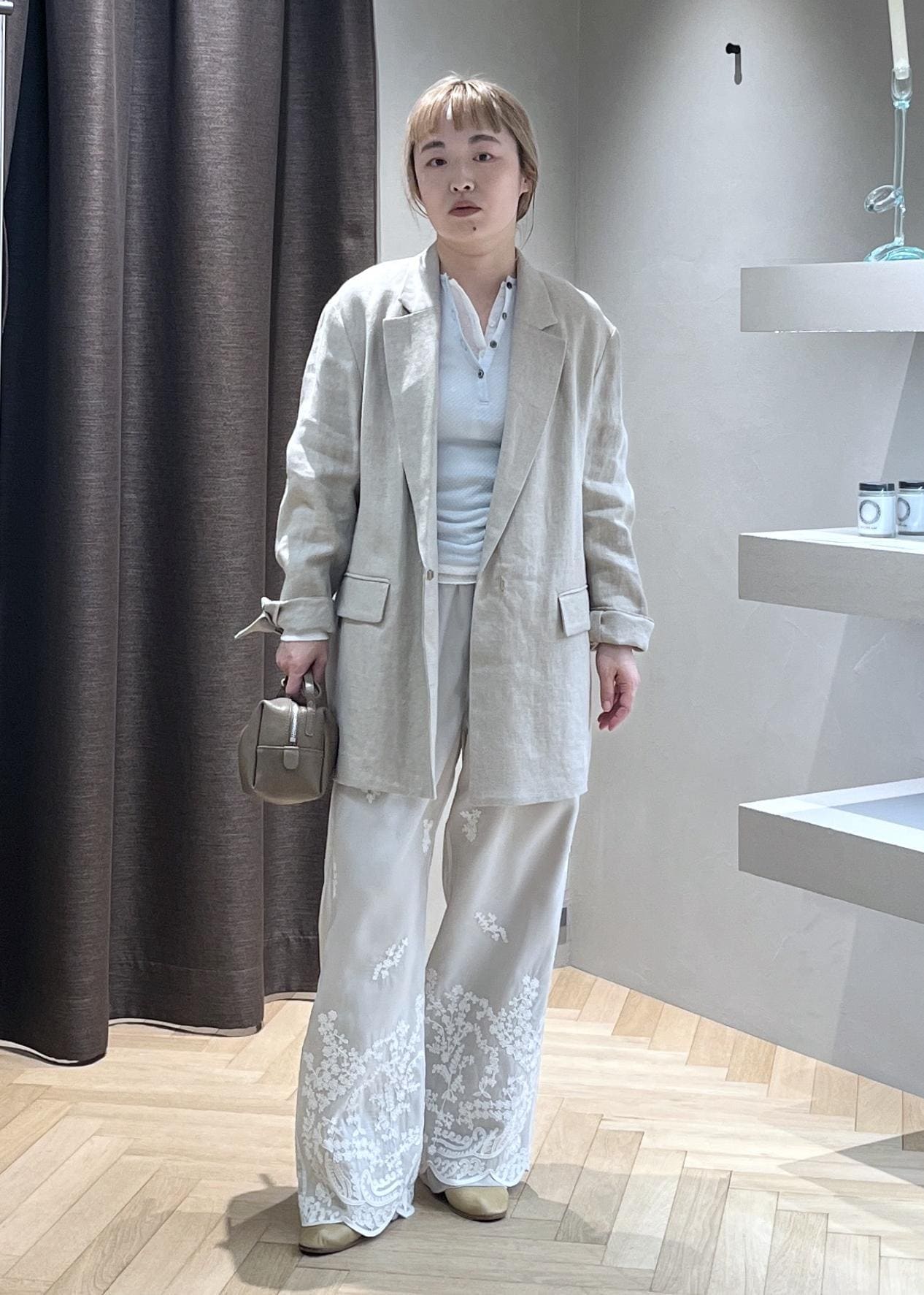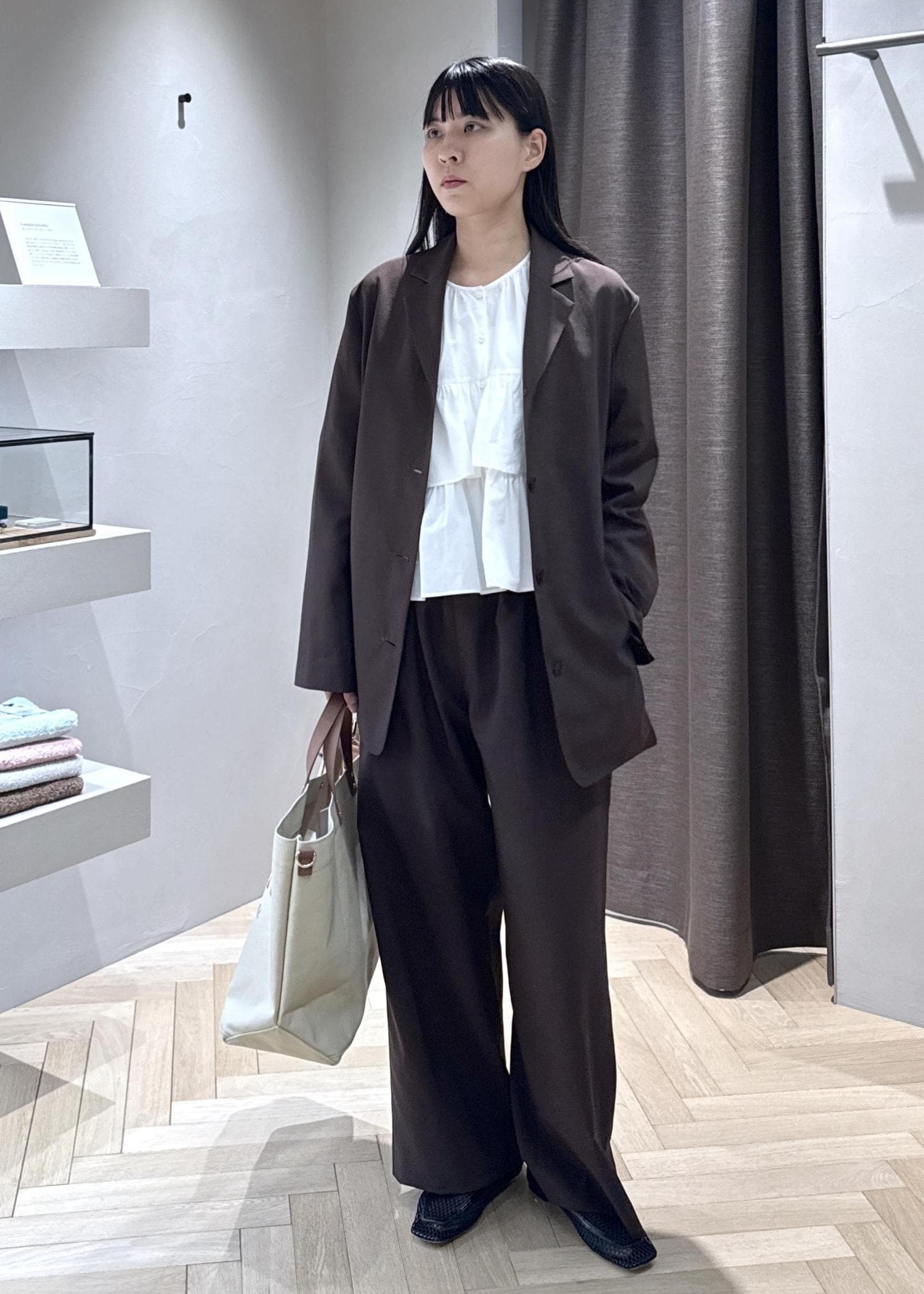 全体的にゆったりめ。袖はゴムがついているので捲ってボリューム感ある着方もできます。