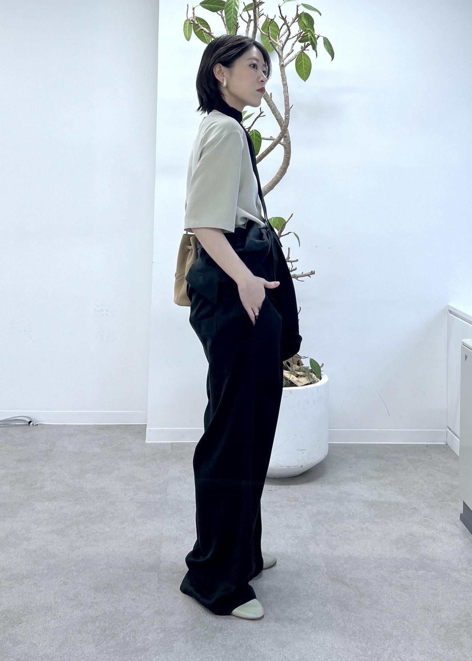 上品なツヤ感もあり、カジュアルな着こなしでもモードな雰囲気が出るので個人的にお気に入り♪